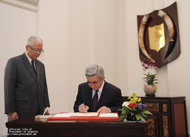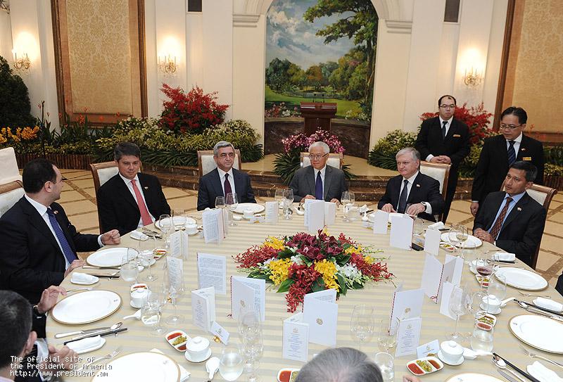 Today, the President of Armenia met with the highest leadership of Singapore – President Tony Tan Keng Yam, Prime Minister Lee Hsien Loong and participated at the dinner given by the Business Federation of Singapore in honor of the President of Armenia which was also attended by the leading businessmen and heads of the most powerful corporations.