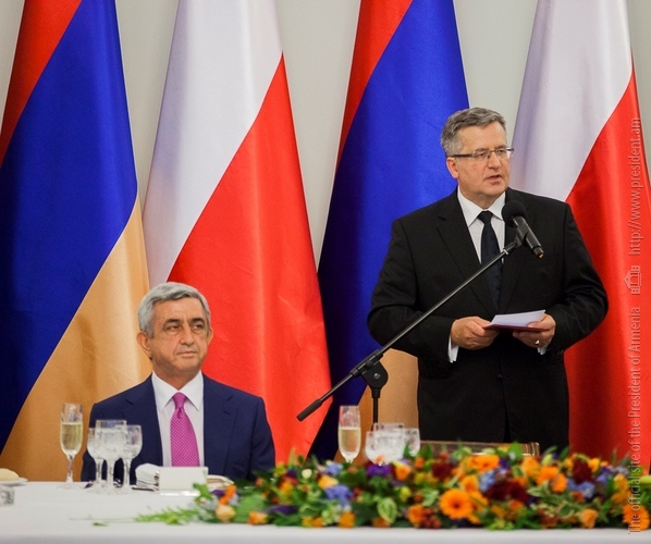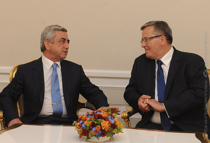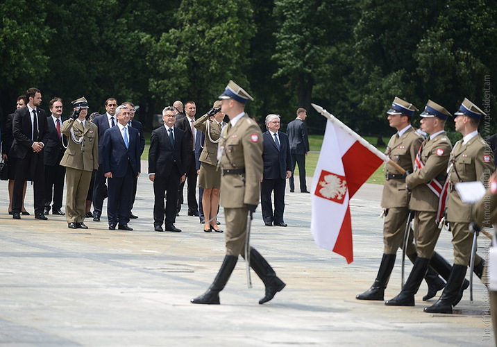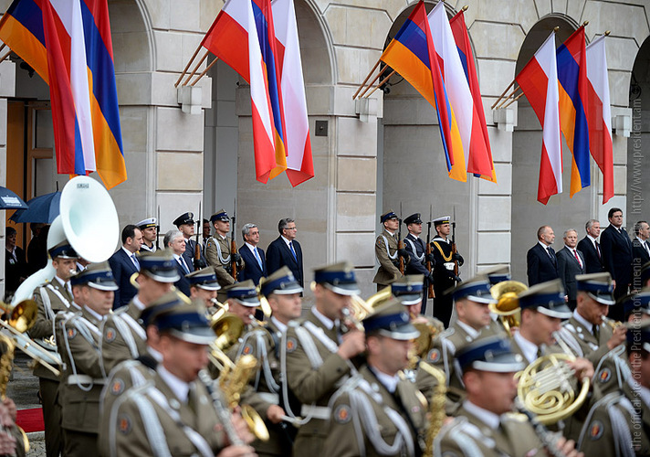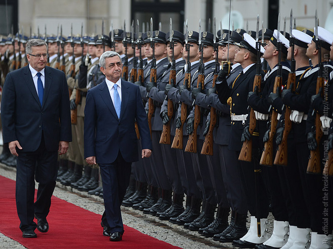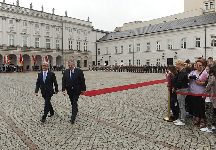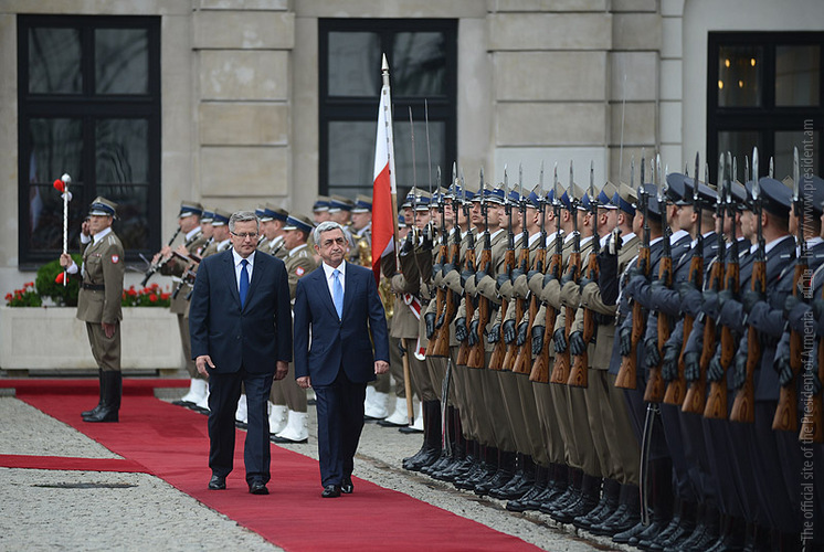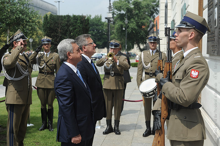 President Serzh Sargsyan, who is in Poland on official visit met on June 25 with the President of Poland Bronisław Komorowski. Before the meeting, the official ceremony of welcoming the President of Armenia took place at the Presidential Palace.