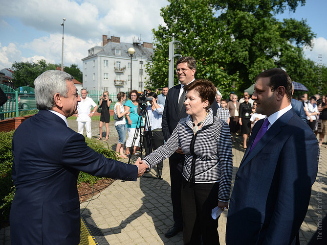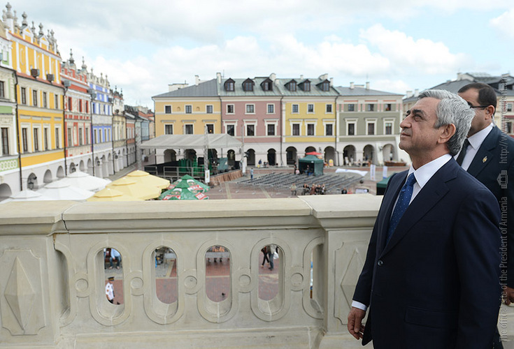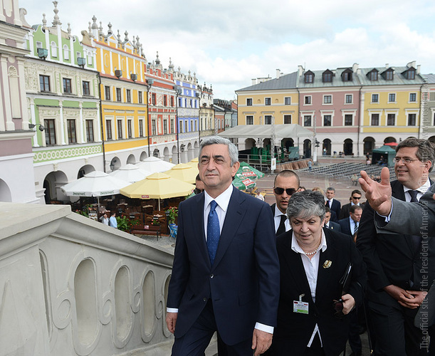 Afterwards, the President left for Zamość town, toured the downtown, visited the town museum and on the Armenian Street of Zamość observed buildings constructed by the Armenians. President Serzh Sargsyan who is the Polish Republic on the official visit, on June 26 at the Consulate Hall of the City Hall of Zamość town met with the representatives of the Armenian-Polish community. The President of Armenia gave a speech for the participants of the meeting.