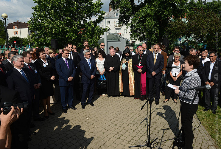 On June 25, Serzh Sargsyan attended also the ceremony of inauguration of the Armenian square in Warsaw, installation and consecration of a cross-stone.