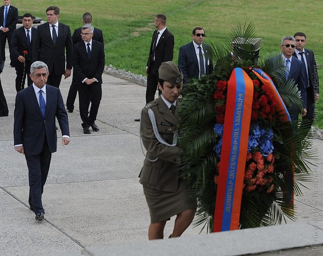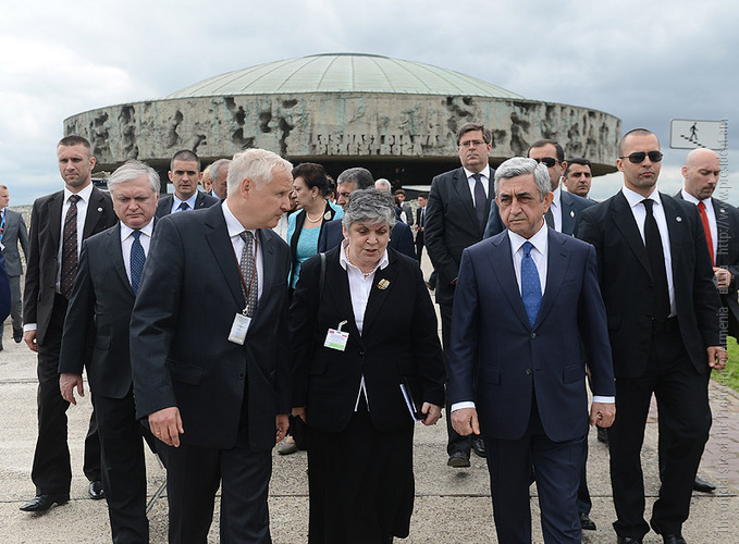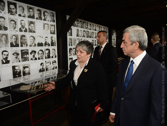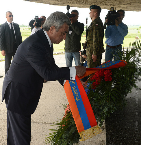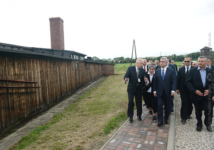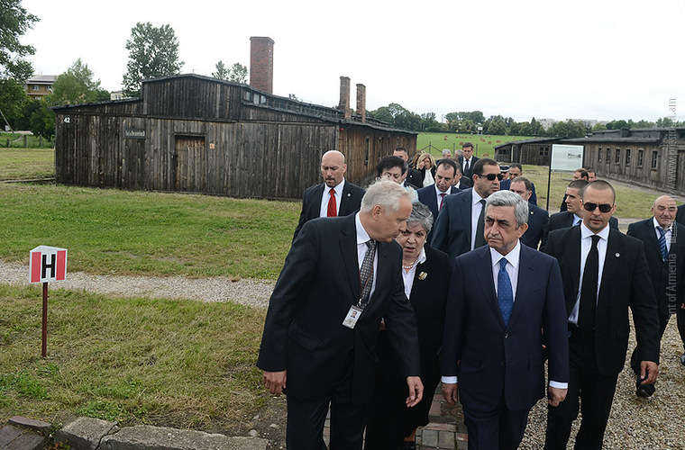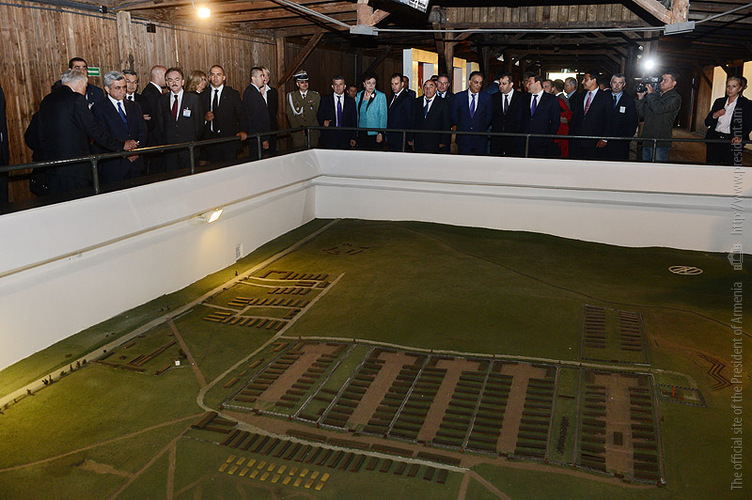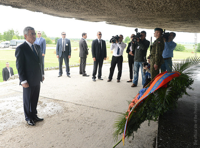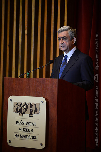 In the framework of his official visit to Poland, President Serzh Sargsyan on June 26 visited Lyubeletsi region, the former Majdanek concentration camp located near Lyublin, which now serves as the Memorial complex. Accompanied by the ceremonial troops, the President laid a wreath in the mausoleum of the complex and paid tribute to the memory of the tens of thousands victims which were barbarically exterminated by the Nazis in this concentration camp, and made an inscription in the Honorary Guest Book. At the Conference center of the complex, President Serzh Sargsyan made a speech.