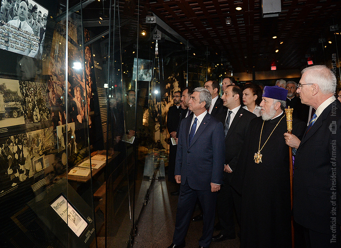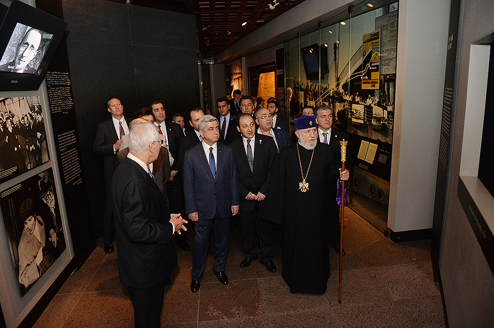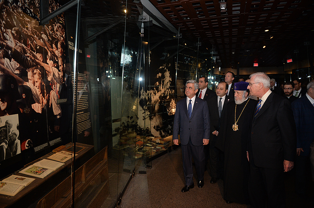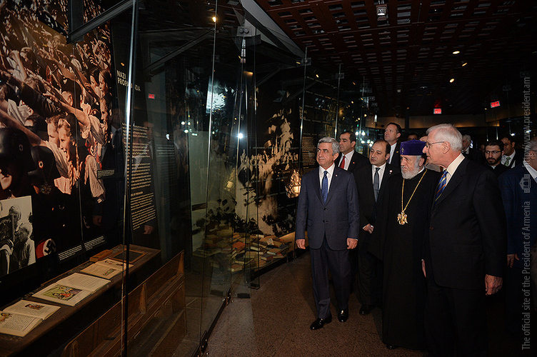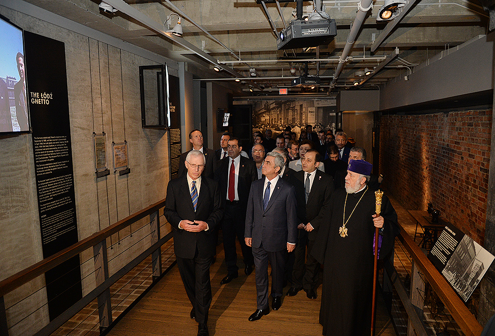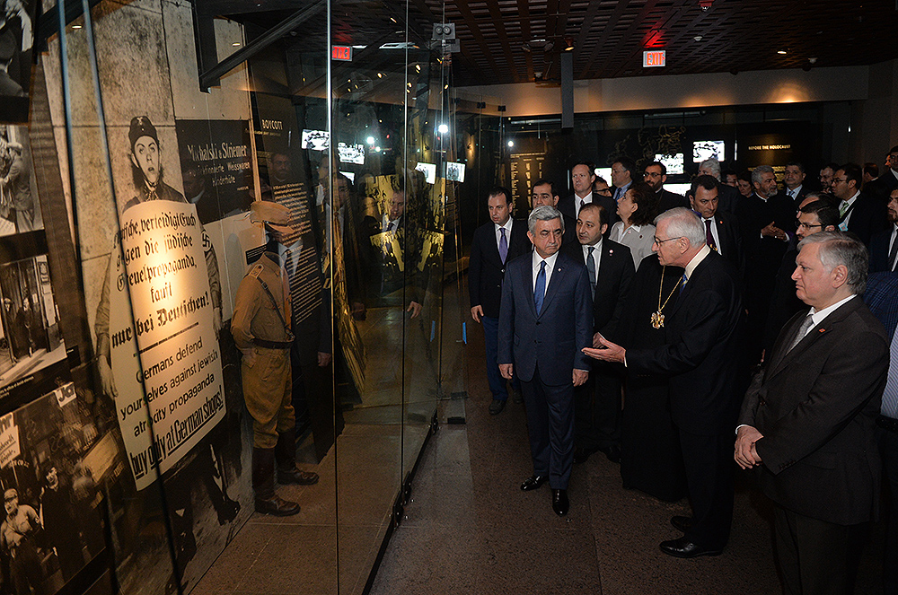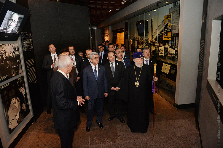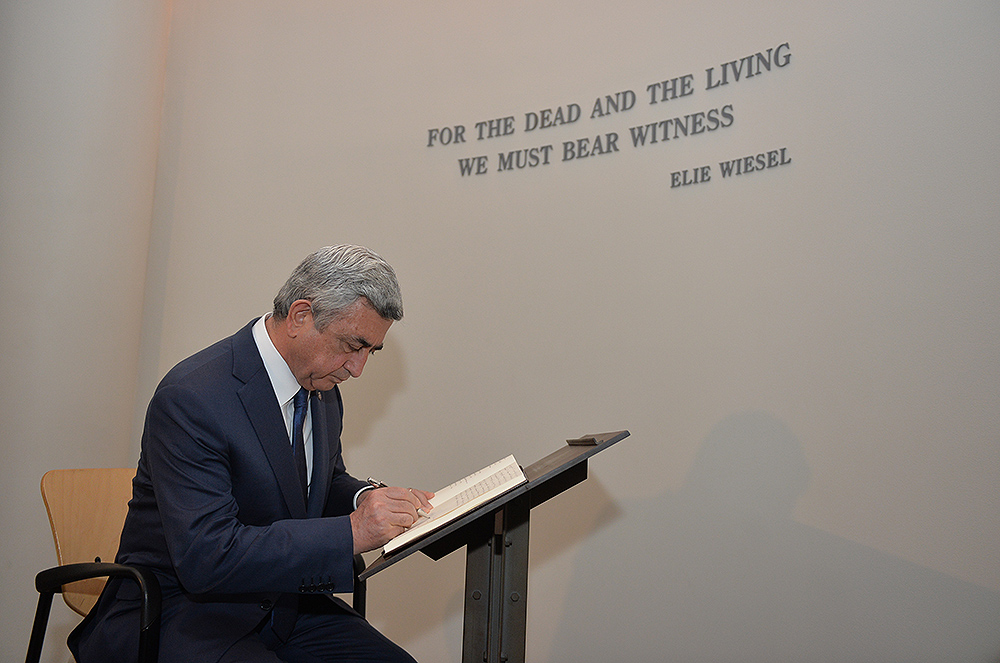 On May 6, President Serzh Sargsyan, who has conducted a working visit to the United States of America, visited the United States Holocaust Memorial Museum in Washington. During the tour, the curator of the museum introduced the Armenian president to the exhibition items. After the tour, Serzh Sargsyan made a note in the museum’s honorary guest book: “I am very impressed with what I saw. This is a place whose walls embrace deep sorrow and at the same time a big ray of hope, emphasizing the advantage of confronting the past over its denial and disguise. This is an invaluable contribution as a silent, but vivid safeguard of the future.
