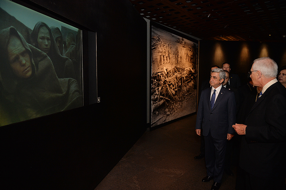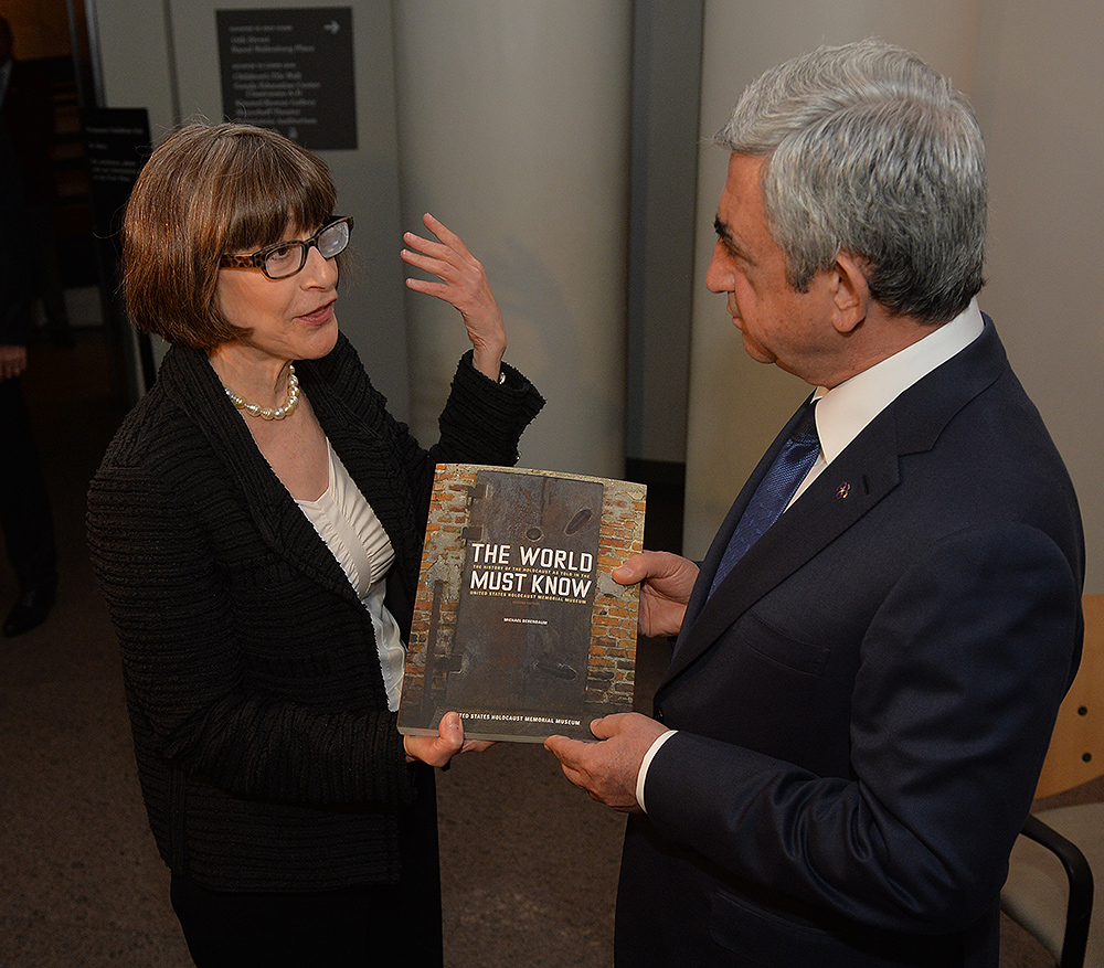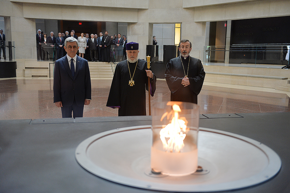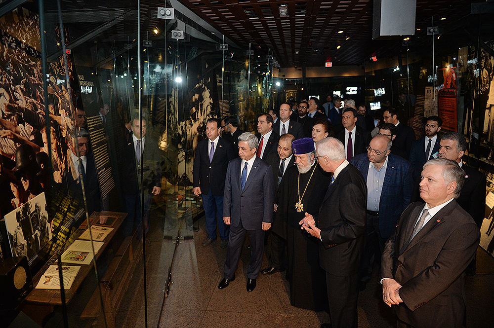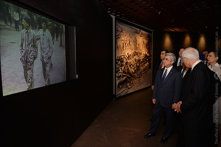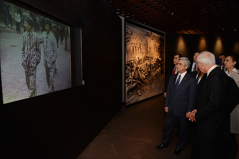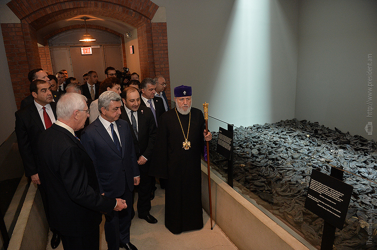 On May 6, President Serzh Sargsyan, who has conducted a working visit to the United States of America, visited the United States Holocaust Memorial Museum in Washington. During the tour, the curator of the museum introduced the Armenian president to the exhibition items. After the tour, Serzh Sargsyan made a note in the museum’s honorary guest book: “I am very impressed with what I saw. This is a place whose walls embrace deep sorrow and at the same time a big ray of hope, emphasizing the advantage of confronting the past over its denial and disguise. This is an invaluable contribution as a silent, but vivid safeguard of the future.