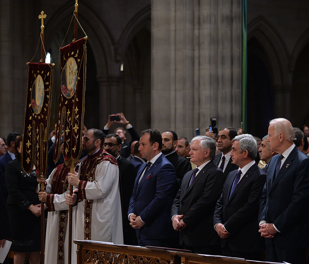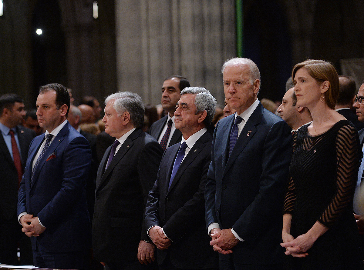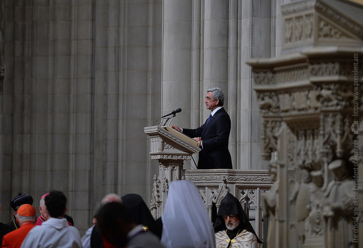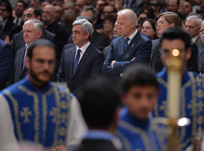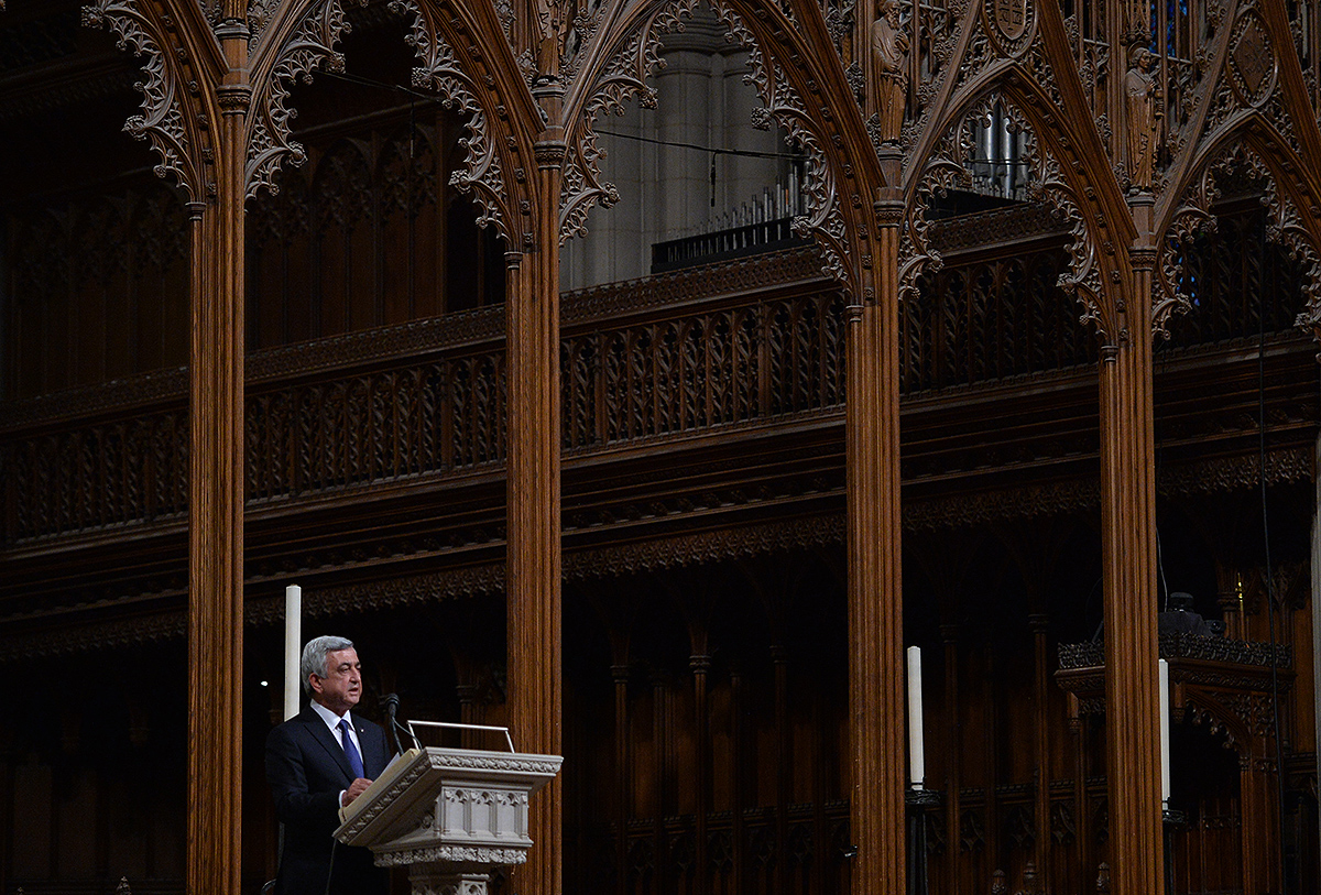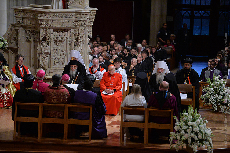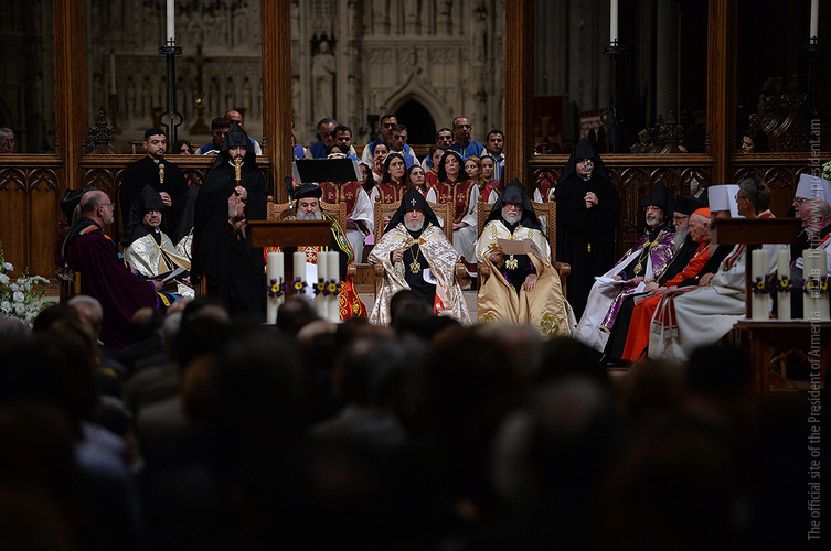 On the evening of May 7, President Serzh Sargsyan, who has paid a working visit to the United States of America, took part in an ecumenical prayer in memory of the Armenian Genocide victims which was performed at Washington National Cathedral. The president was accompanied by His Holiness Karekin II, Supreme Patriarch and Catholicos of All Armenians, and Aram I, Catholicos of the Great House of Cilicia. The Armenian president delivered a speech. The ecumenical prayer service was also joined by U.S. Vice-President Joe Biden, U.S. Ambassador to the UN Samantha Power, Katharine Schori, Presiding Bishop of the Episcopal Church of the United States, Olav Fykse Tveit, Secretary-General of the World Council of Churches, numerous clergymen, thousand members of the Armenian-American community, American diplomats, as well as by public and political figures.