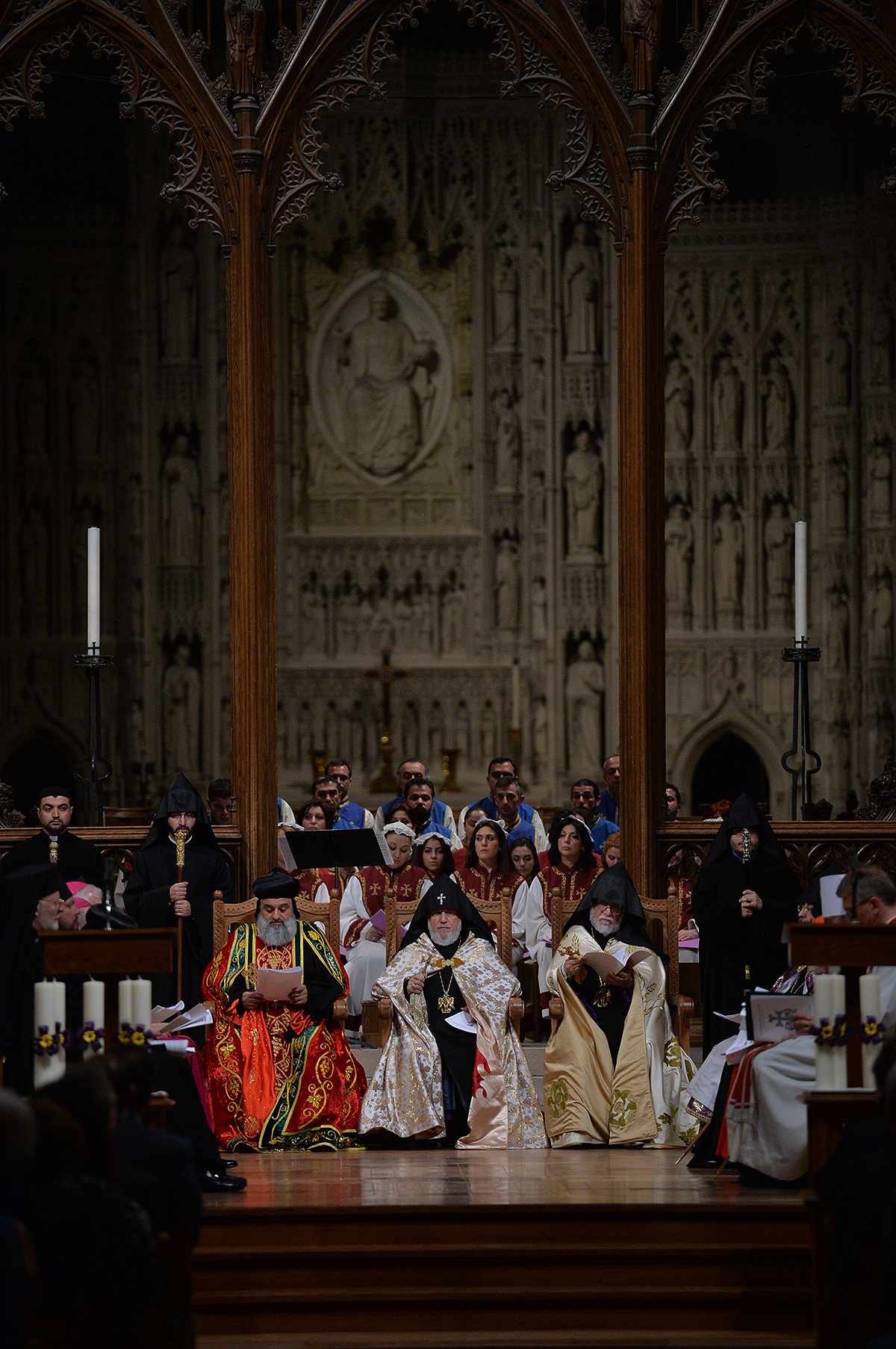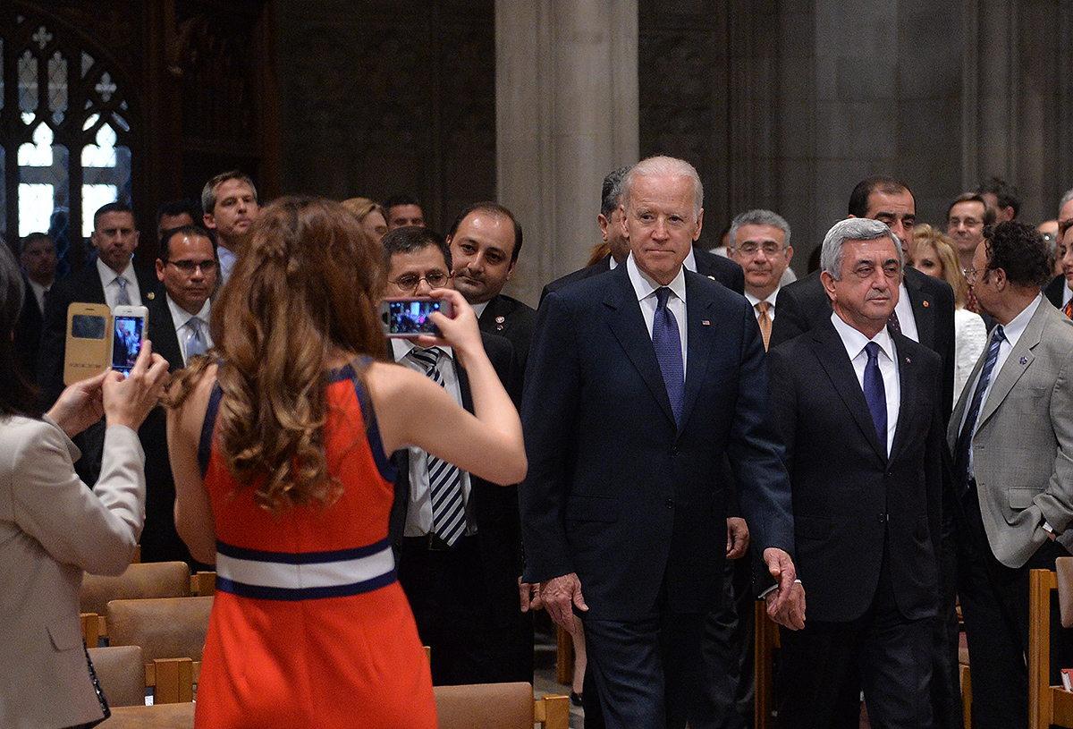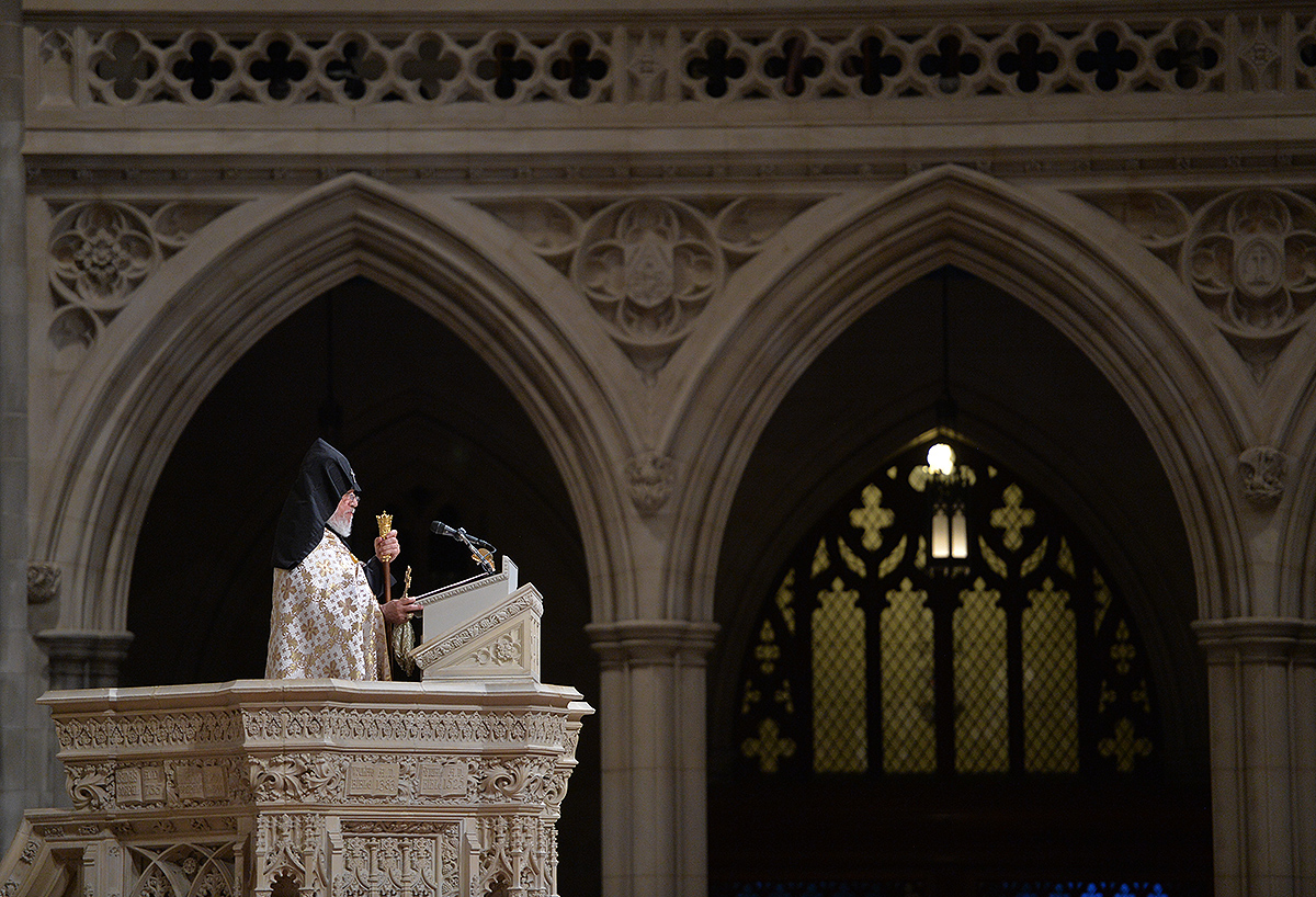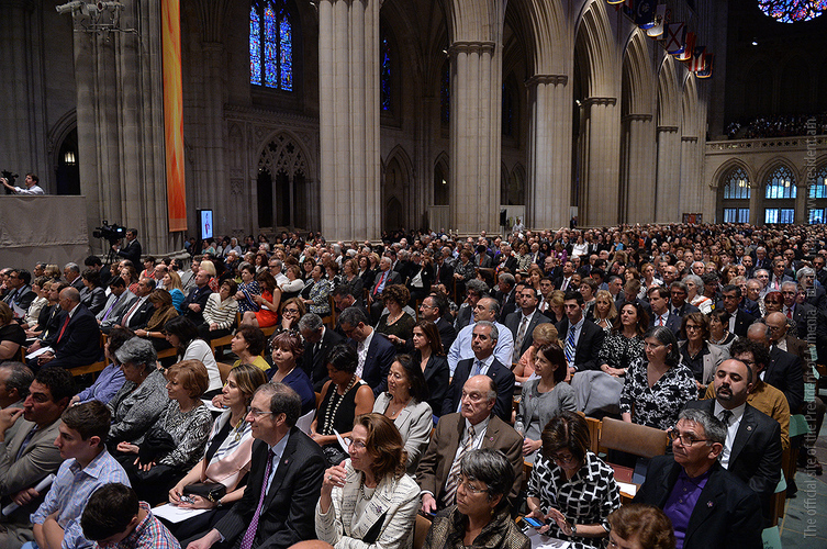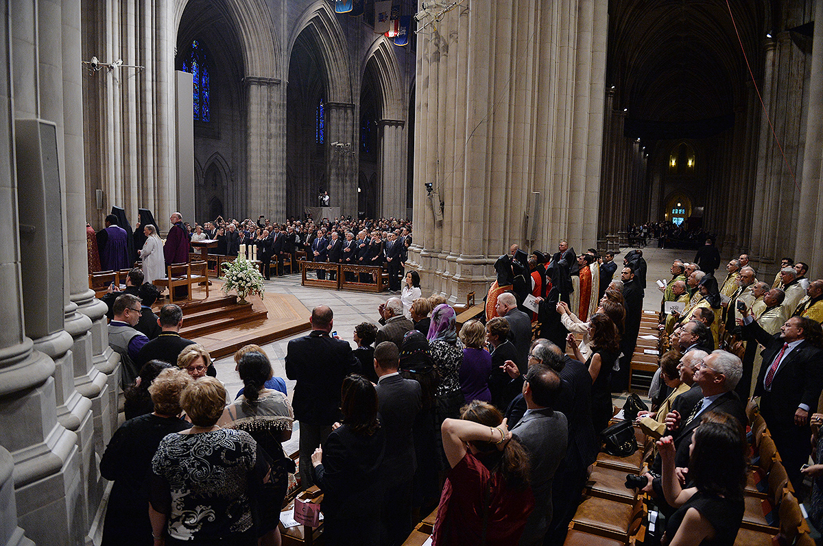 On the evening of May 7, President Serzh Sargsyan, who has paid a working visit to the United States of America, took part in an ecumenical prayer in memory of the Armenian Genocide victims which was performed at Washington National Cathedral. The president was accompanied by His Holiness Karekin II, Supreme Patriarch and Catholicos of All Armenians, and Aram I, Catholicos of the Great House of Cilicia. The Armenian president delivered a speech. The ecumenical prayer service was also joined by U.S. Vice-President Joe Biden, U.S. Ambassador to the UN Samantha Power, Katharine Schori, Presiding Bishop of the Episcopal Church of the United States, Olav Fykse Tveit, Secretary-General of the World Council of Churches, numerous clergymen, thousand members of the Armenian-American community, American diplomats, as well as by public and political figures.
