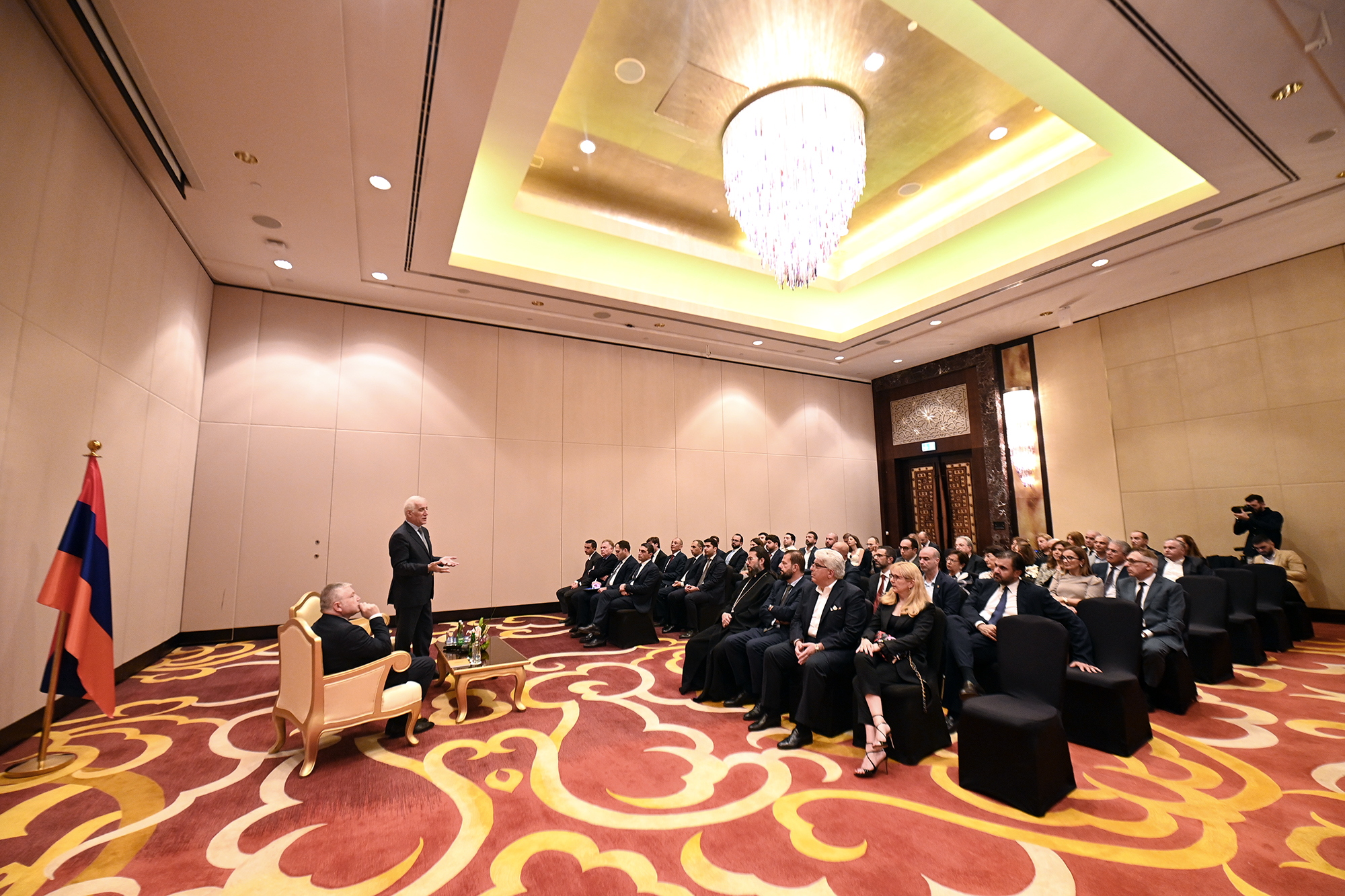Welcoming the attendees, the President underscored in his speech that he attached great importance to such meetings with the representatives of diaspora communities, as they are a good opportunity to provide compatriots living outside of Armenia with complete and reliable information on domestic and foreign developments of our country in an unrestrained atmosphere.