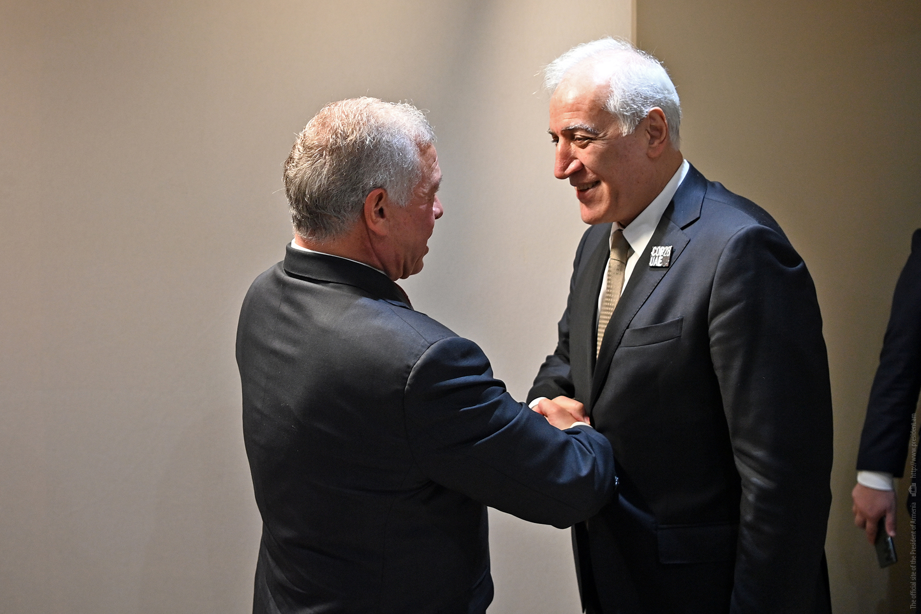The President of the Republic presented the King of Jordan with details of the overall realities and developments in the region. Ideas were exchanged on Armenia's steps and pathways to establish sustianable and lasting peace in the South Caucasus region.