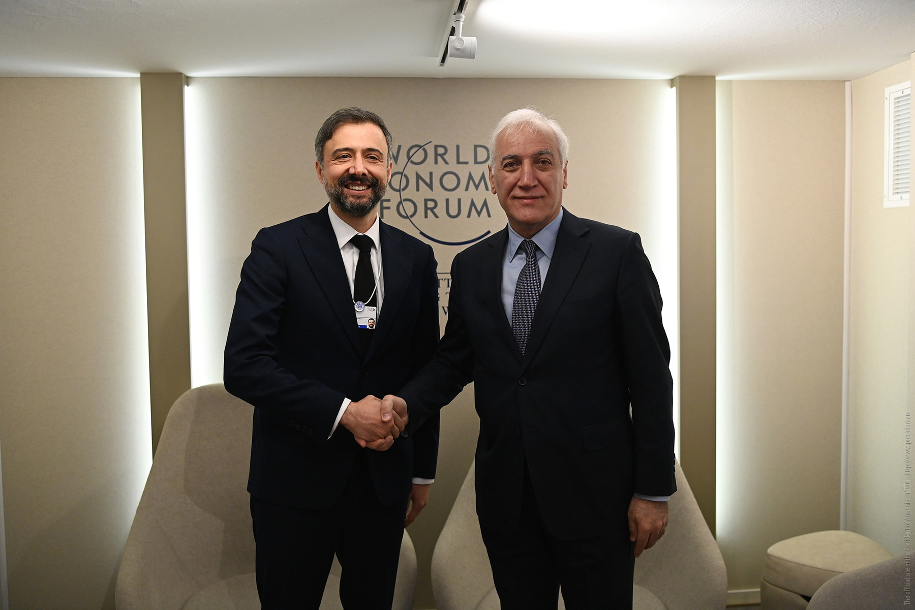 During the Davos Economic Forum, President Vahagn Khachaturyan met with President of the International Fund of Agricultural Development (IFAD) Alvaro Lario.