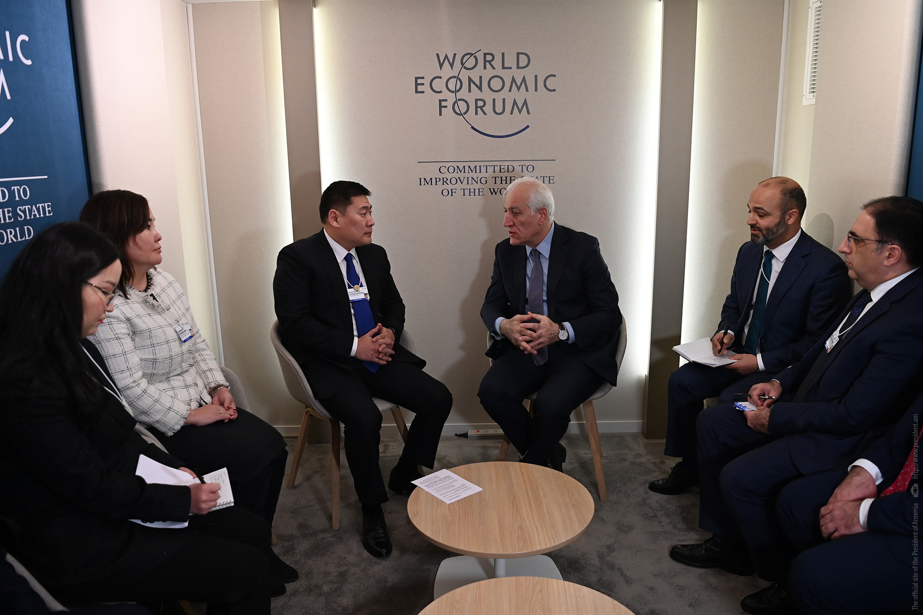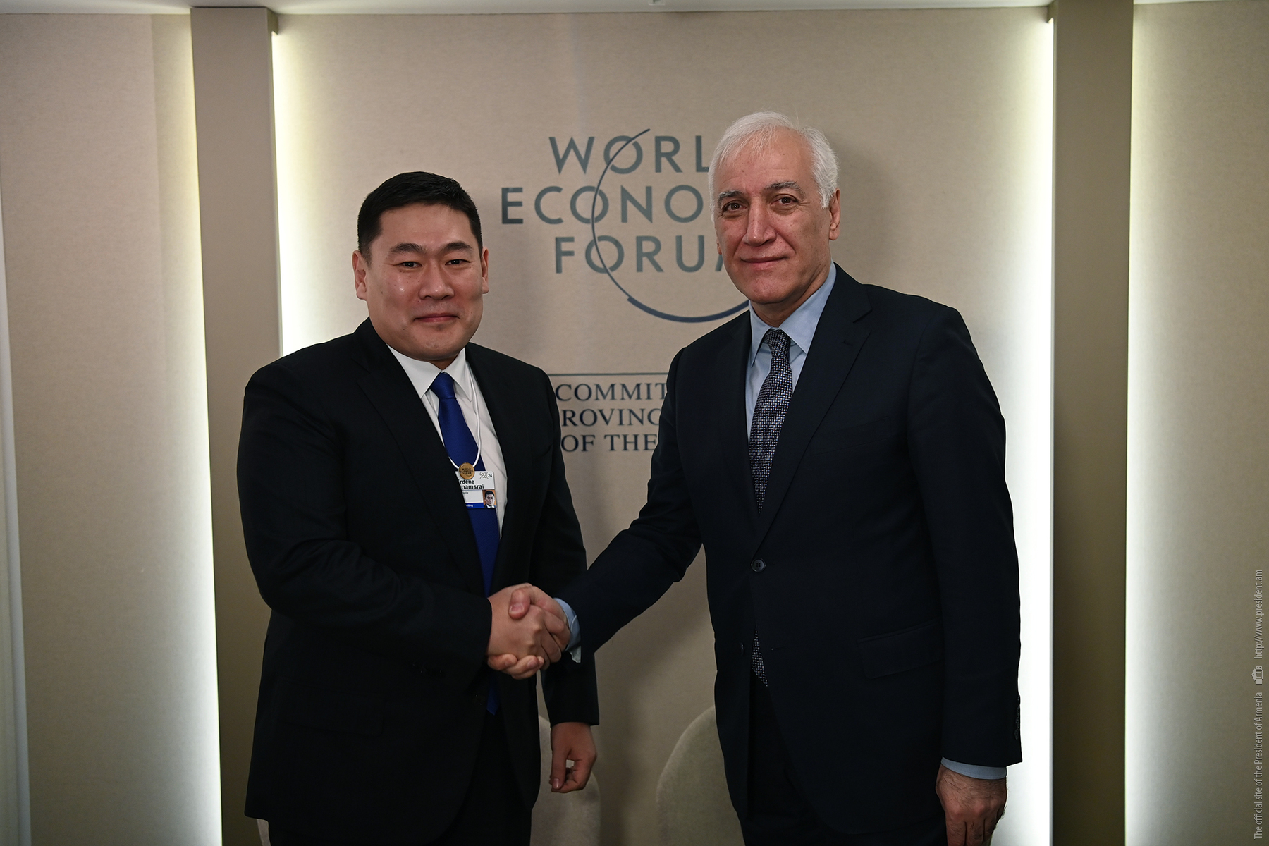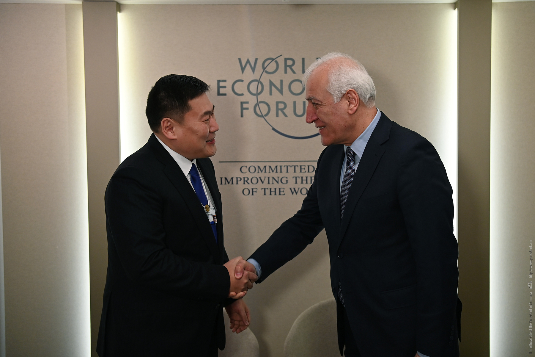 President Vahagn Khachaturyan met with Prime Minister of Mongolia Oyun-Erdene Luvsannamsrai in Davos.