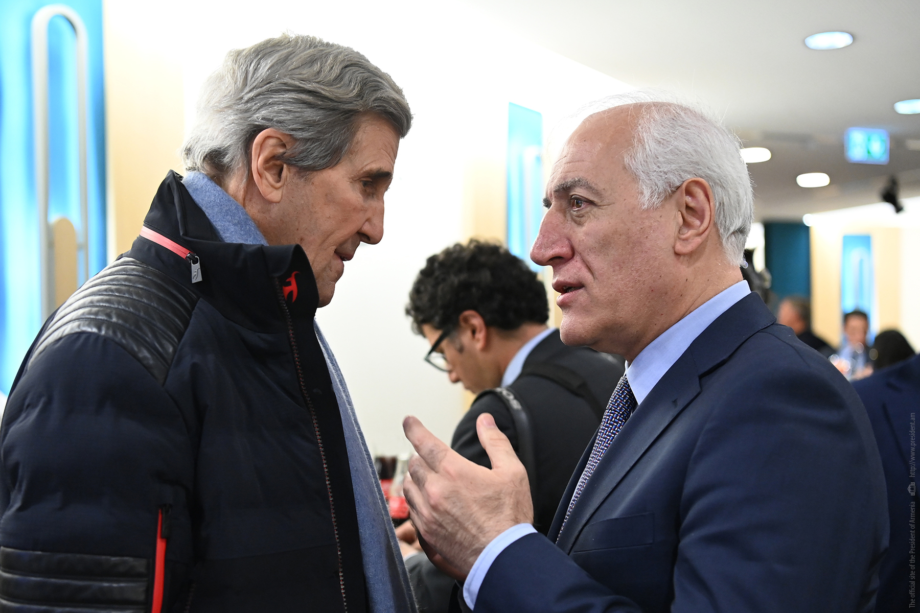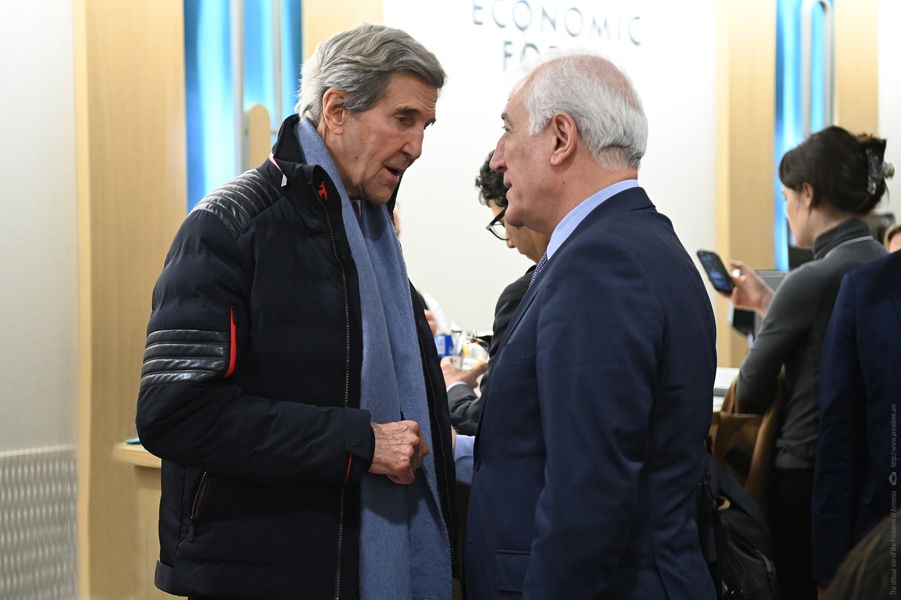 President Vahagn Khachaturyan had brief conversations with Argentina’s President Javier Milei, UN Secretary-General António Guterres and former U.S. Secretary of State John Kerry at the World Economic Forum in Davos.