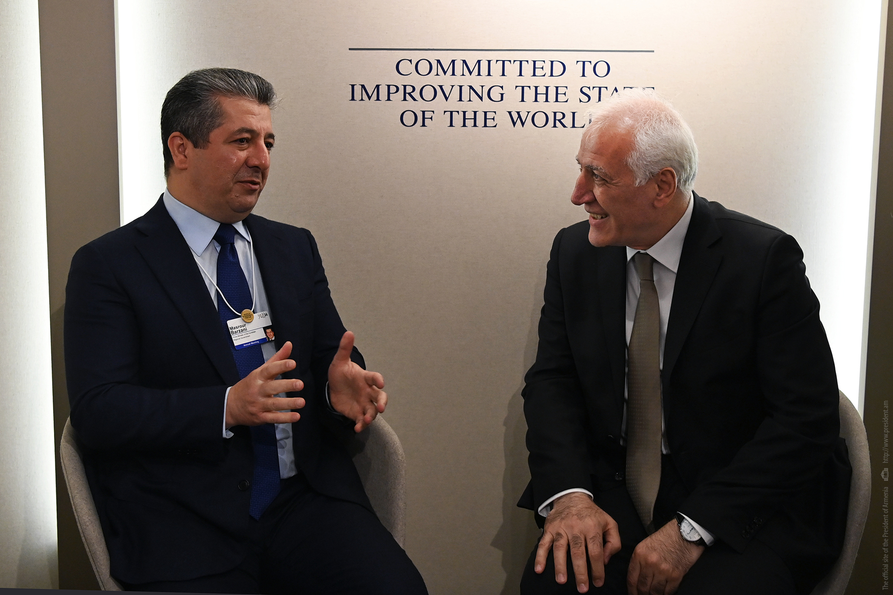 In Davos, President Vahagn Khachaturyan met with Prime Minister of Iraq’s Kurdistan, Masrour Barzani.