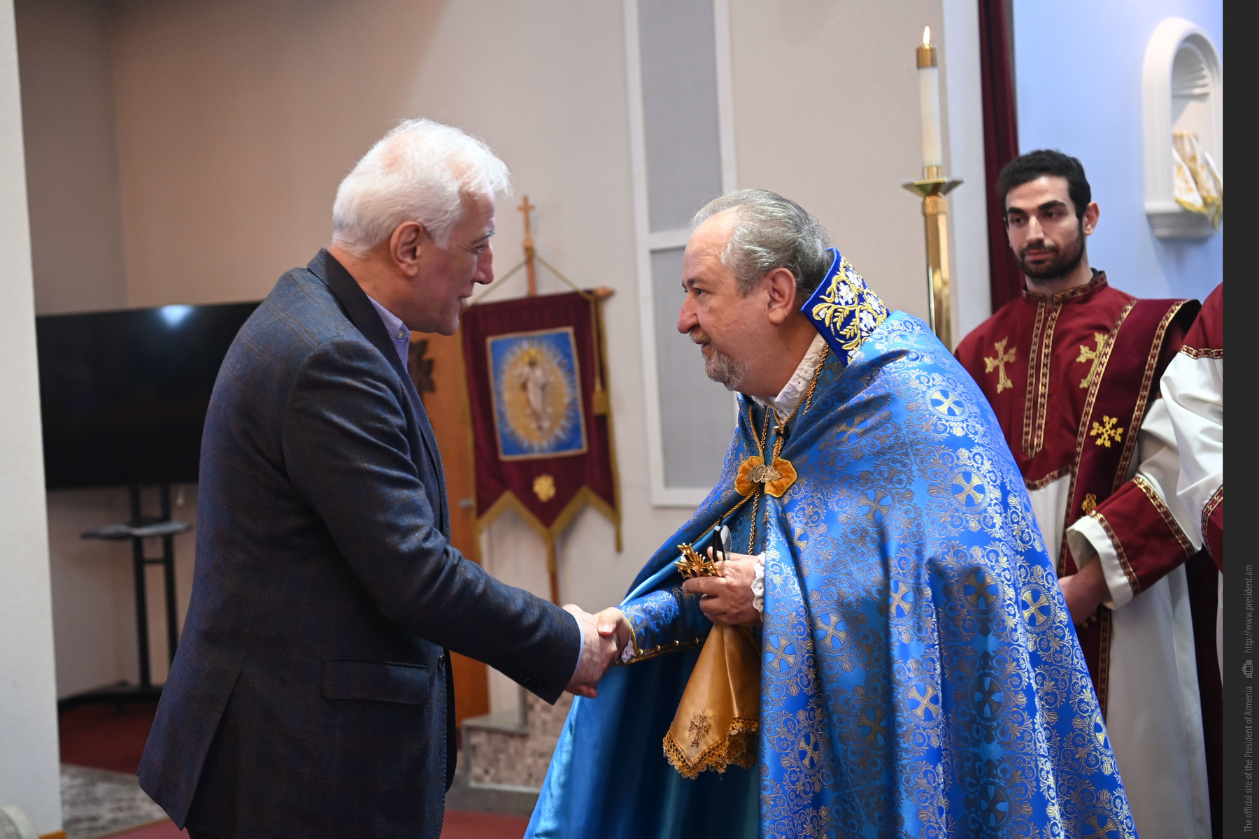 President Vahagn Khachaturyan, who is on a working visit to the US state of California, visited the Armenian Church of St. Andrew in Cupertino and took part in the liturgy.