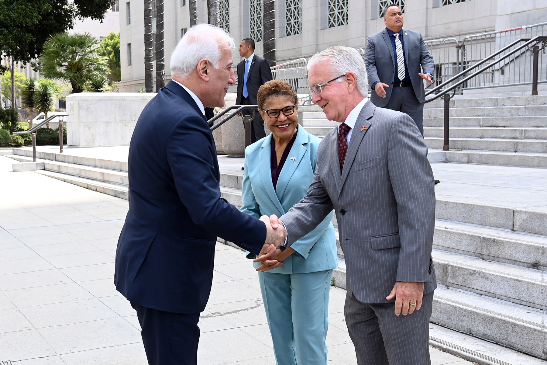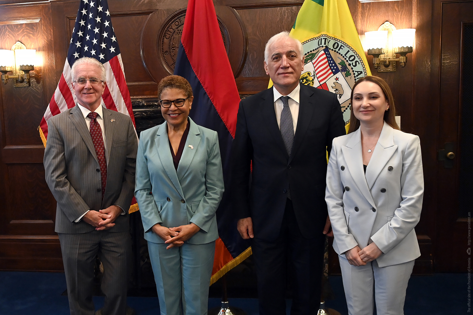 Greeting the President, Mrs. Bass said: "We have an honor to welcome RA President Vahagn Khachaturyan in LA Mayor’s office today. As the sister city of Yerevan, Los Angeles supports Armenia and will continue to ensure the well-being of Armenians living in Los Angeles, providing them with the necessary support for prosperity. The United States and Armenia have a strong relationship based on common values and commitment to the democratic process, and we expect lasting and strong cooperation with Armenia and the Armenian people."