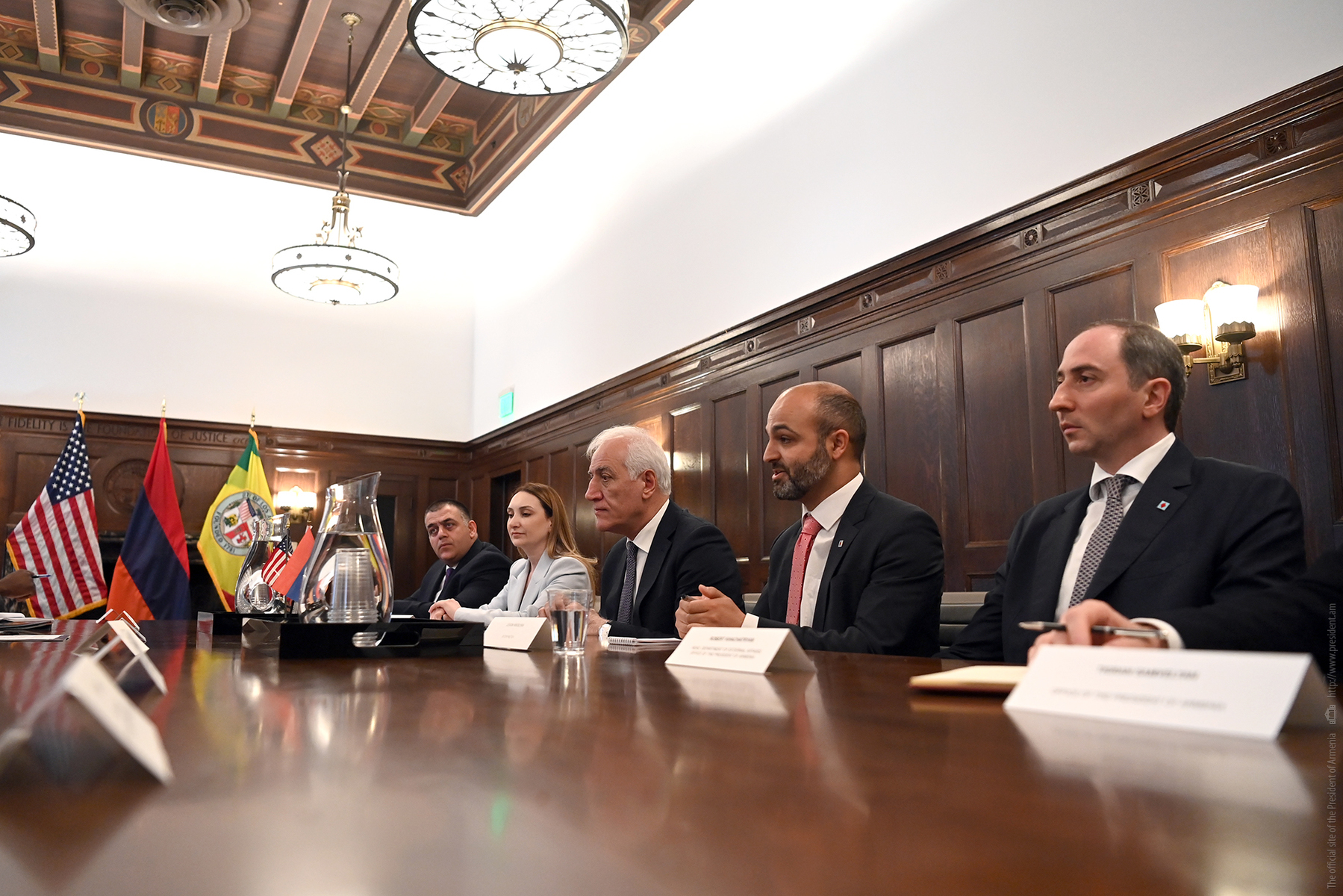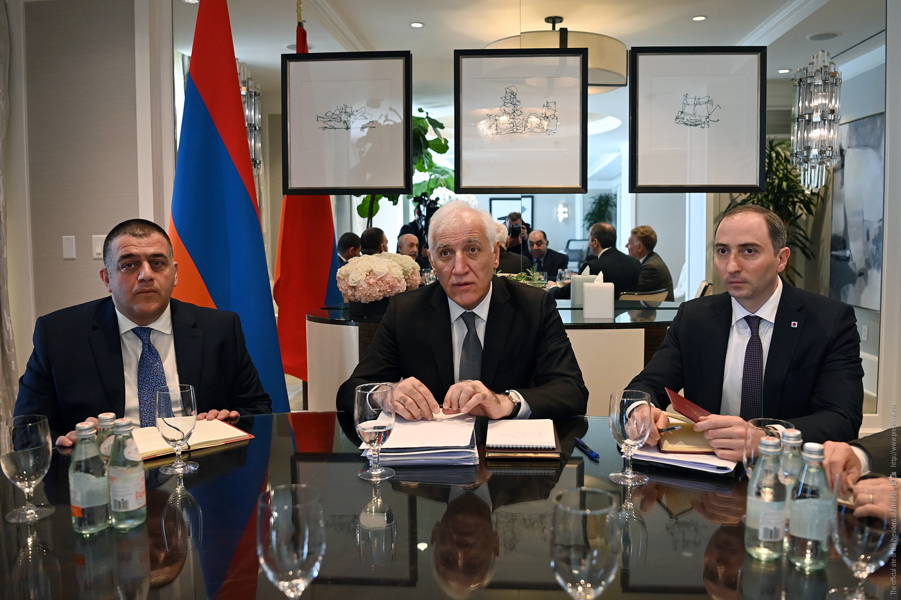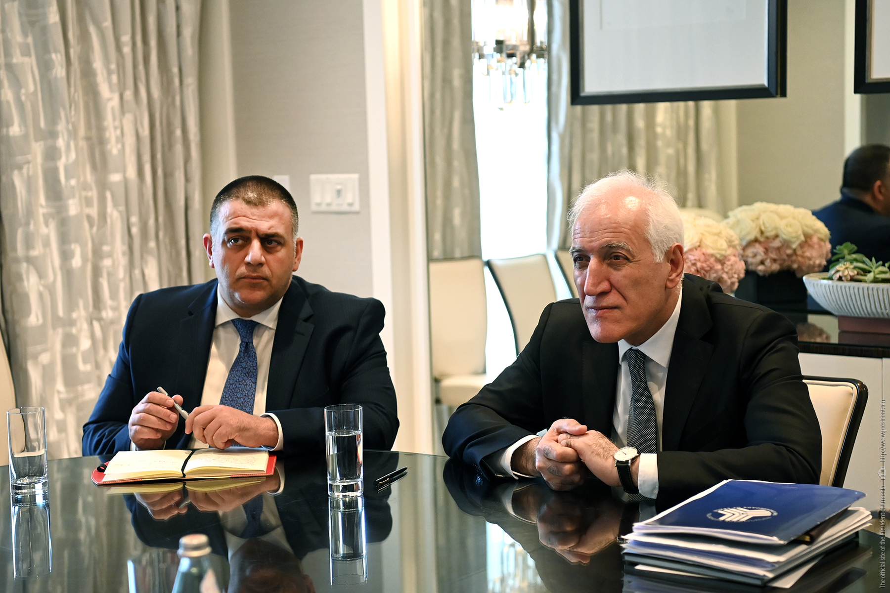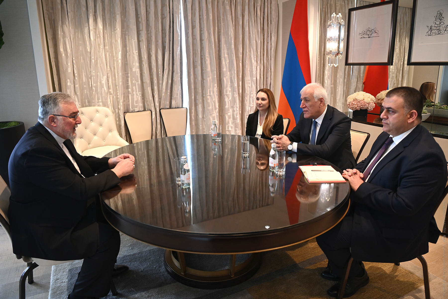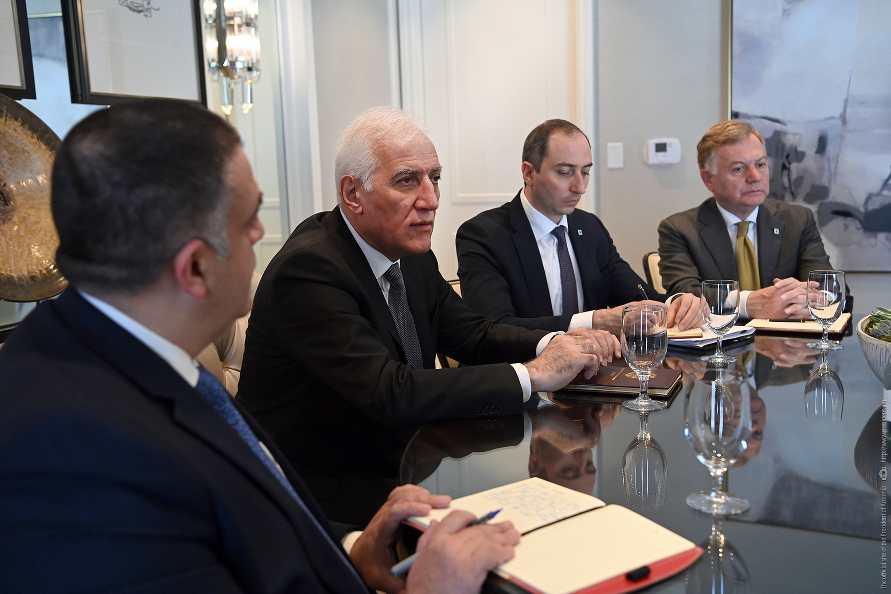 During his working visit to the United States, President of the Republic Vahagn Khachaturyan met with representatives of the Armenian Assembly of America David Ojakian and John Kevranian.