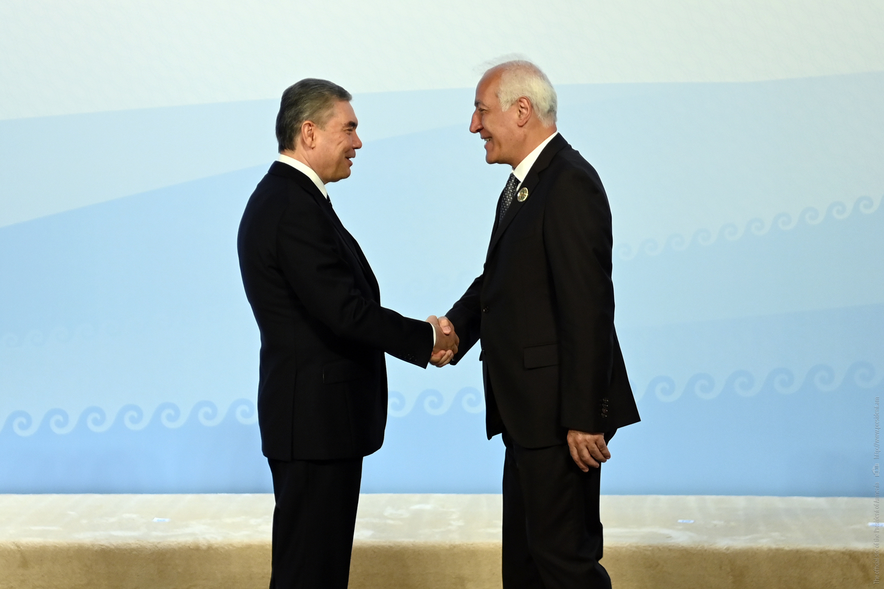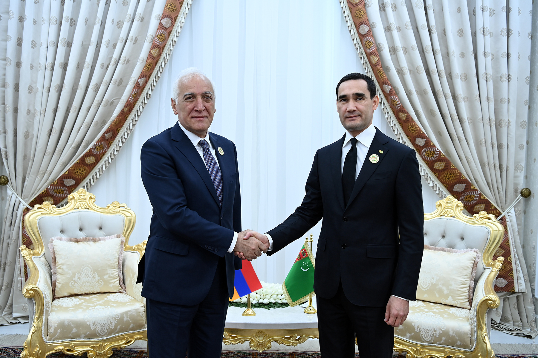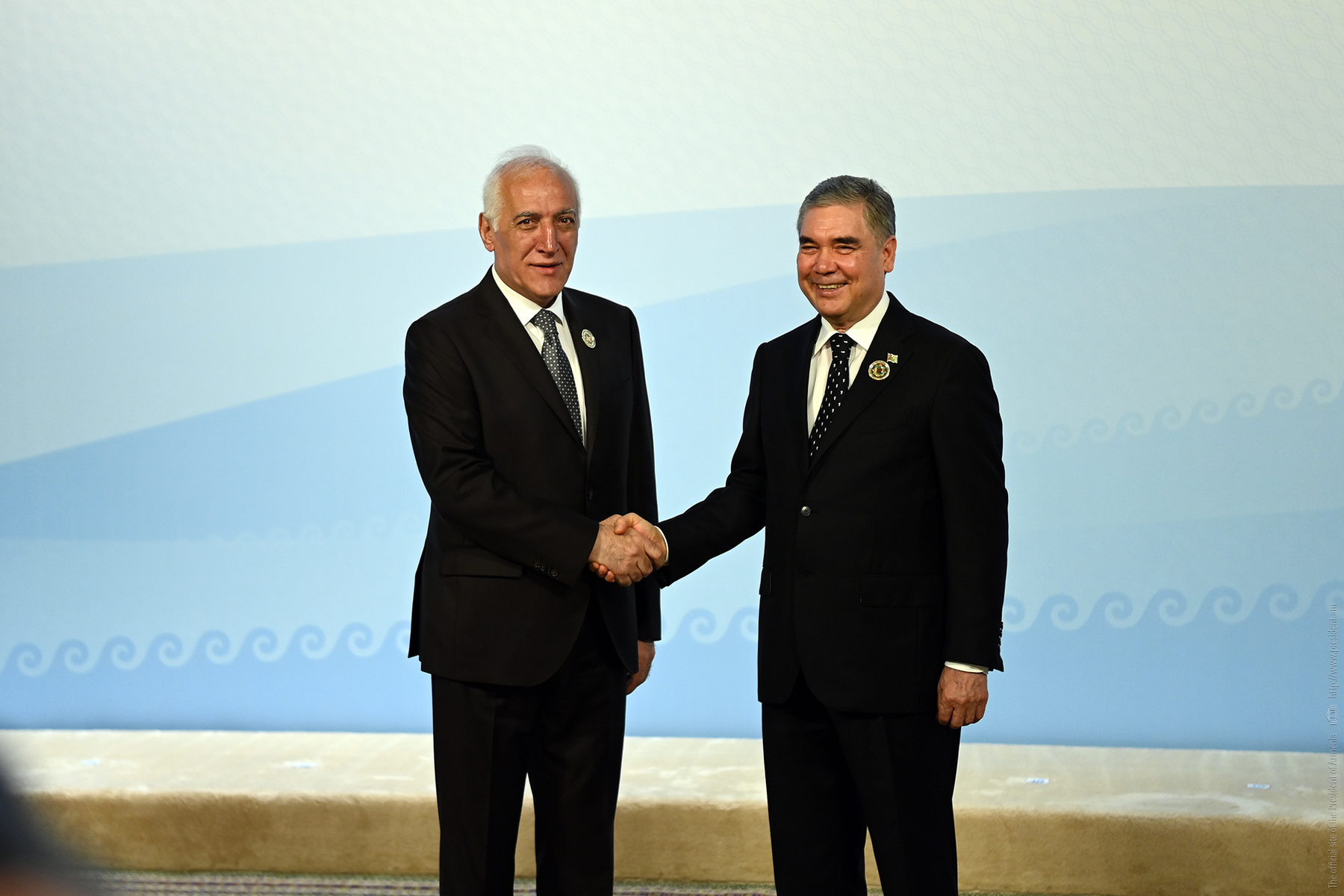 During his working visit to Turkmenbashi, Turkmenistan, President Vahagn Khachaturyan met with President of Turkmenistan Serdar Berdimuhamedov.