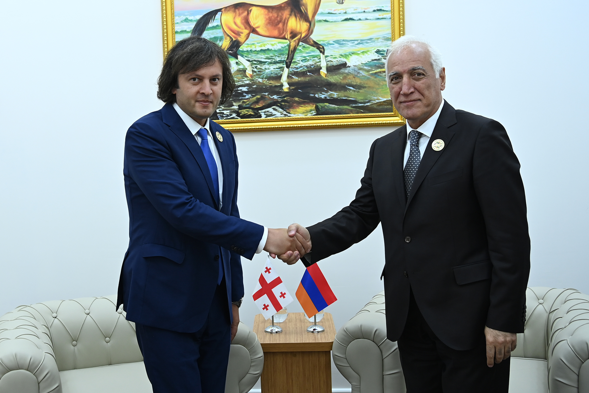 On August 4, 2025, during his working visit to Turkmenbashi in Turkmenistan, President Vahagn Khachaturyan held a meeting with the Vice President of the Islamic Republic of Iran, Mohammad Reza Aref, within the framework of the Third Conference of Landlocked Developing Countries.