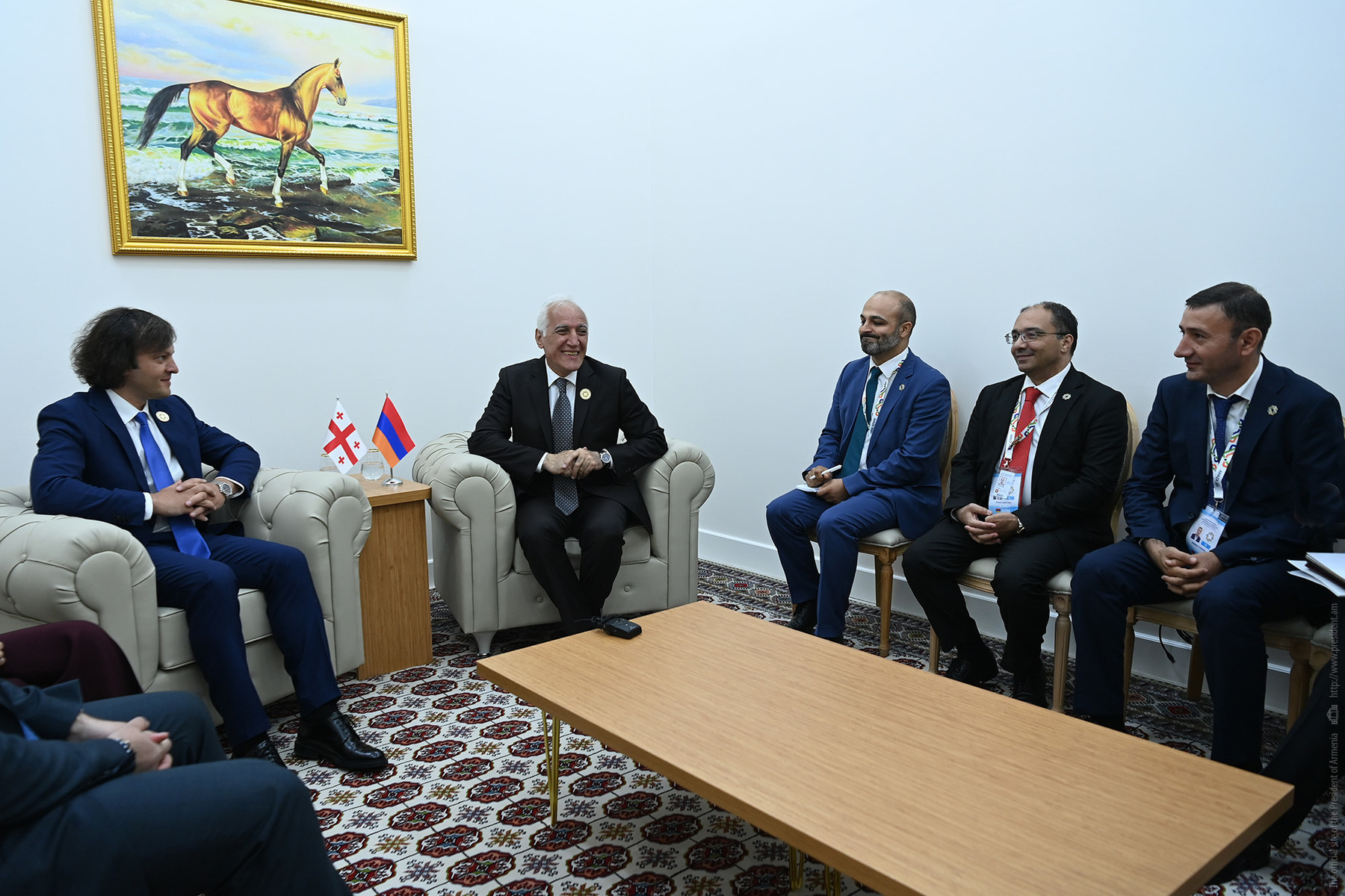 During his working visit to Turkmenbashi, Turkmenistan, President Vahagn Khachaturyan participated in a side event and panel discussion entitled “Promotion of regional security and cooperation through enhanced trade and transport connectivity” organized by the Armenian side within the framework of the Third United Nations Conference on Landlocked Developing Countries.