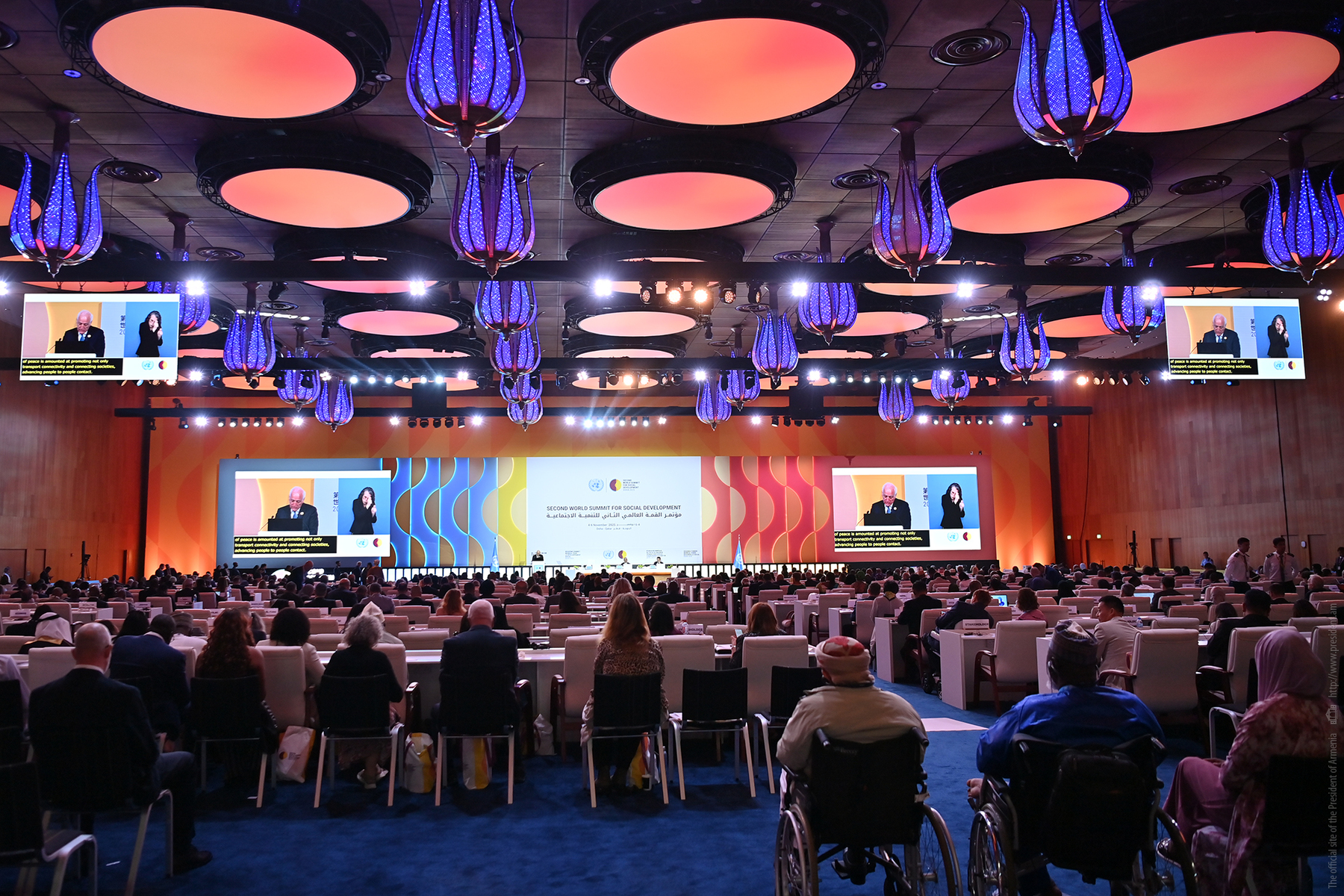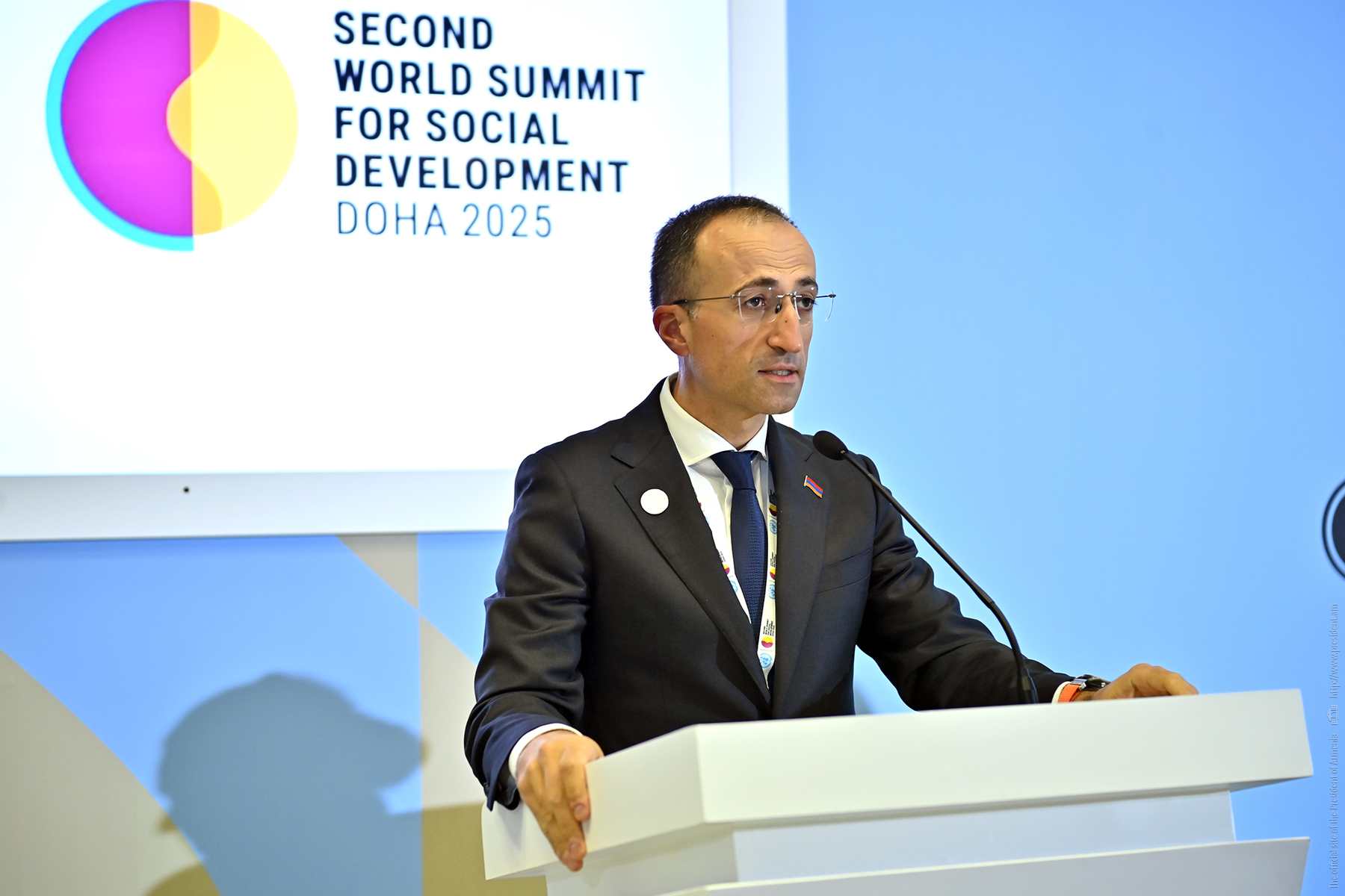 Within the framework of his working visit to the State of Qatar, President of the Republic of Armenia Vahagn Khachaturyan delivered a speech at the UN Second World Summit for Social Development.