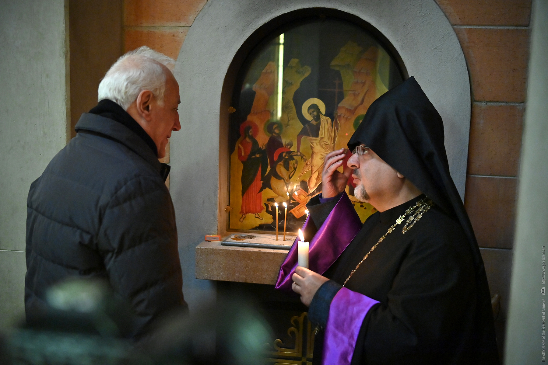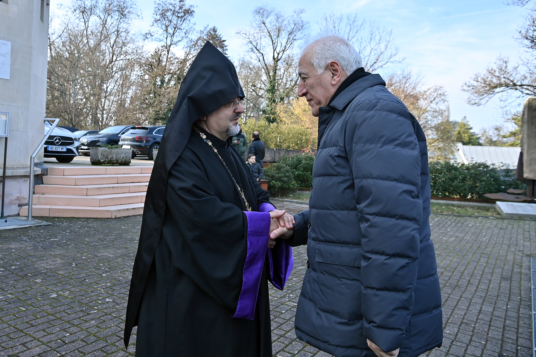 During his working visit to the Swiss Confederation, President of the Republic Vahagn Khachaturyan visited St. Hakob Church in Geneva. The President was received and welcomed by the Vicar of the Armenian Diocese of Switzerland, the Reverend Father Goosan Aljanian.