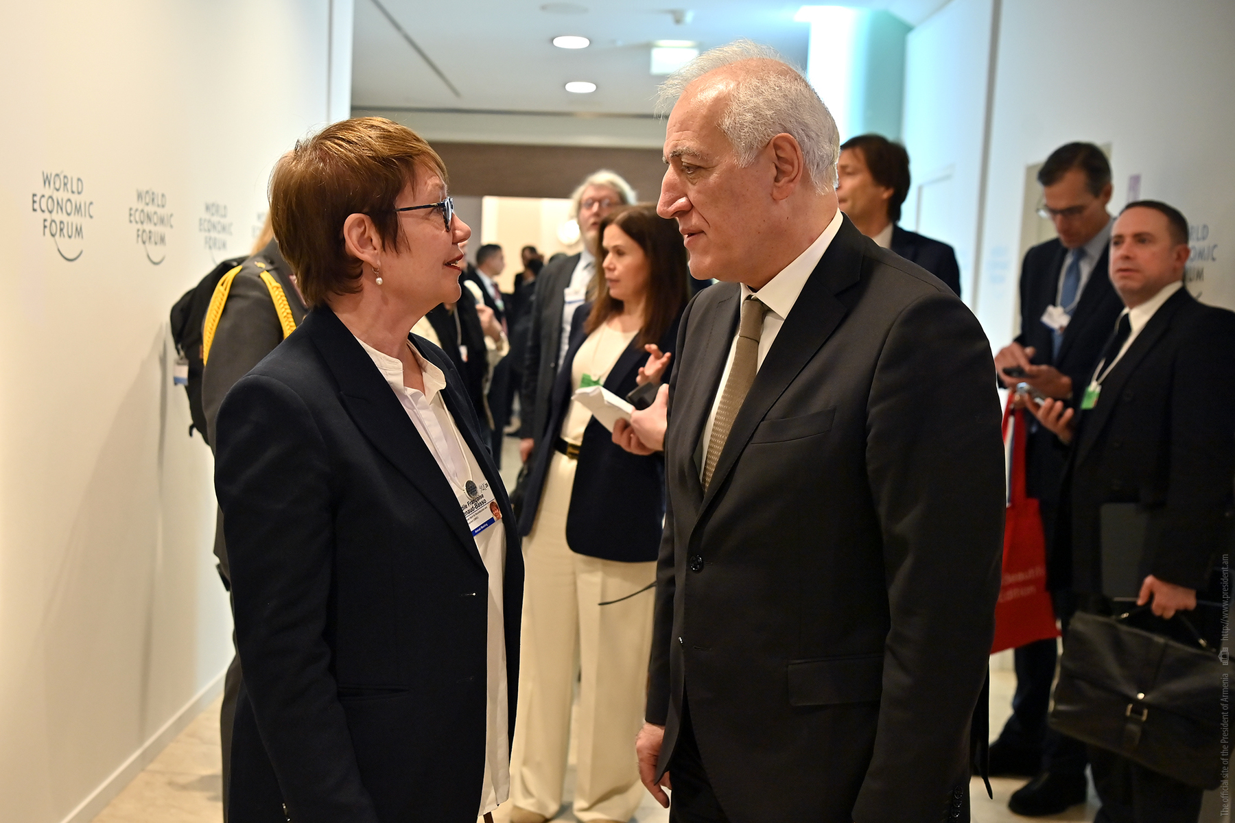 Within the framework of the Davos Economic Forum, President of the Republic Vahagn Khachaturyan held discussions with Marta Kos, the European Commissioner for Enlargement, Sabeeh Al-Mukhaizeem, the Minister of Electricity, Water, and Renewable Energy of Kuwait, Charles Hajj, the Minister of Telecommunications of Lebanon, Sviatlana Tsikhanouskaya, Belarusian political figure, and Odile Renaud-Basso, the President of the European Bank for Reconstruction and Development.