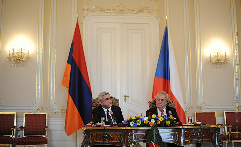 We noted with satisfaction that since the establishment of diplomatic relations between our countries we have registered prominent progress in interstate affairs. A dozen of documents on different fields signed today and to be signed tomorrow attest to it. We outlined healthcare, environment, decentralized collaboration, trade, economic and cultural cooperation as the areas of prospective cooperation. We stressed the necessity of widening business connections and stimulating investments, promoting people-to-people contacts and developing tourism. The direct flights under operation between our capitals serve as an important prerequisite for that. We attached importance to the ongoing Armenian-Czech business forum within the current visit.