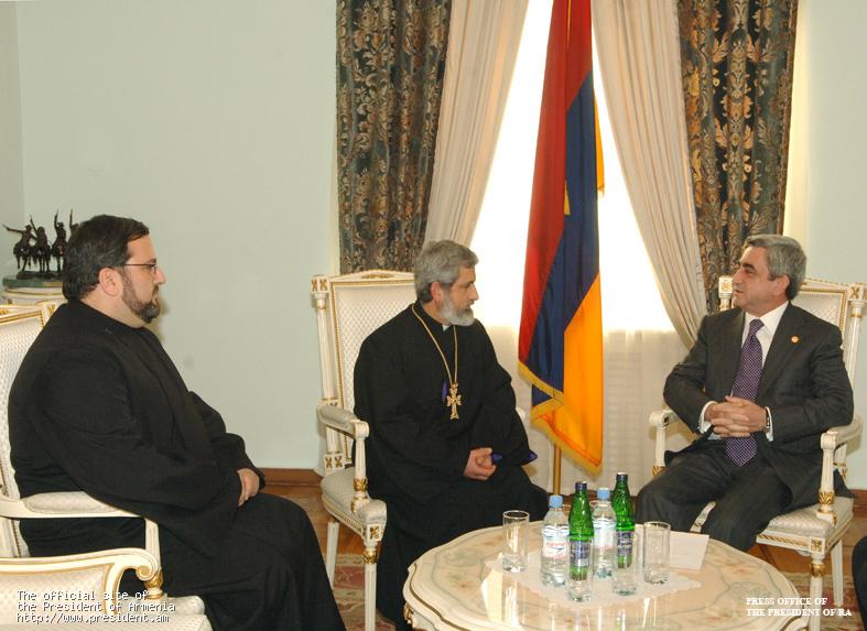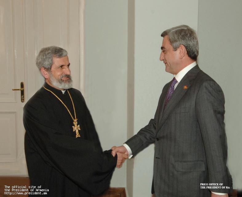 Today, President Serzh Sargsyan received the General Abbot, Senior Archimandrite of St. Lazar Congregation Eghia Qilaghpian and Director of the Mkhitarian Educational Foundation in Armenia, Father Serob Chamourlian.