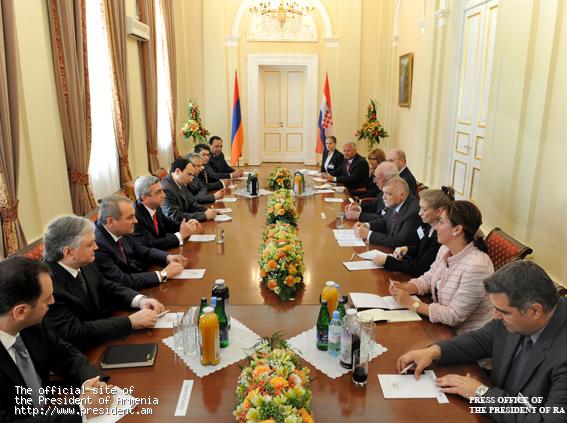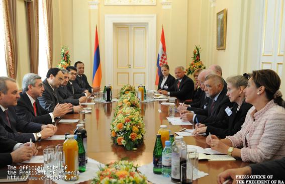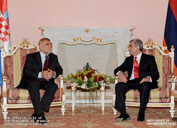 At the meeting the President of Armenia presented to the President of Croatia standpoint of our country regarding the resolution of the NK conflict, European integration process, and Armenian-Turkish political dialogue. The parties expressed confidence that all the existing problems should be solved through peaceful means, that military option for the conflict resolution leads nowhere and the consequences would be unpredictable.