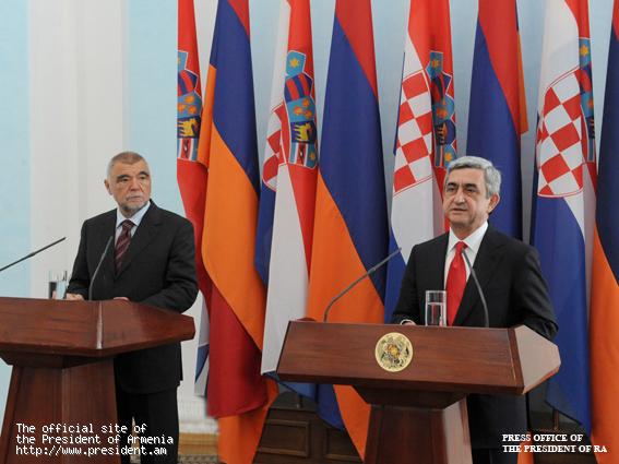 Noting, that this was the first official visit of the President of Croatia to Armenia, President Sargsyan expressed confidence that it would foster development and deepening of the relations between the two countries. “The Armenian side sees excellent prospects for the development of bilateral and multilateral cooperation”, - stressed the President of Armenia.