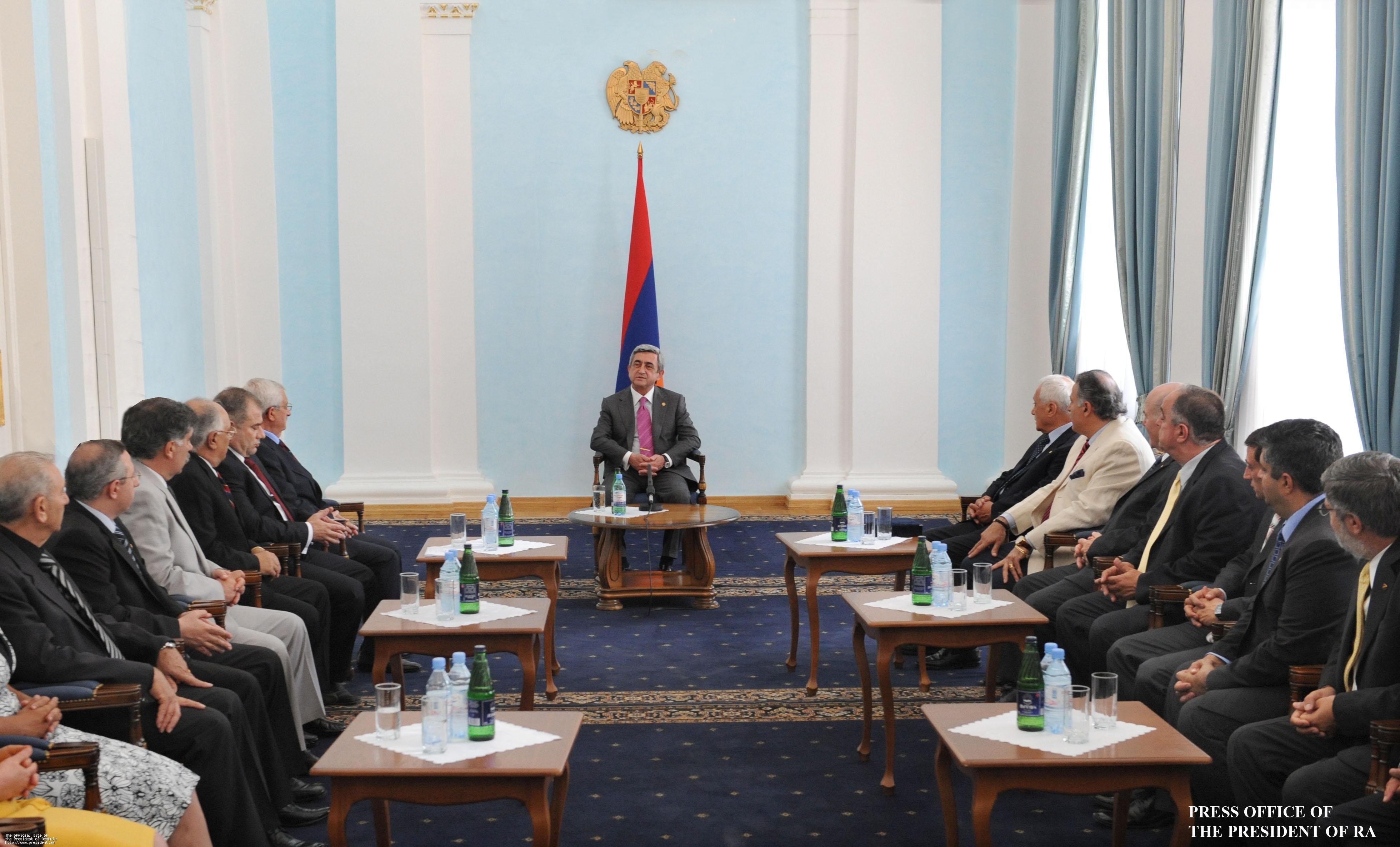 Today, President Serzh Sargsyan received delegation of the Armenian General Athletic Union, which has arrived to Armenia to participate in the HOMENETMEN games which are conducted in Armenia for the first time and run August 1-8.
