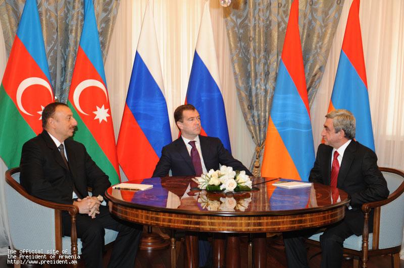 Presidents Serzh Sargsyan, Dmitri Medvedev and Ilham Aliev held a tripartite meeting in Sochi