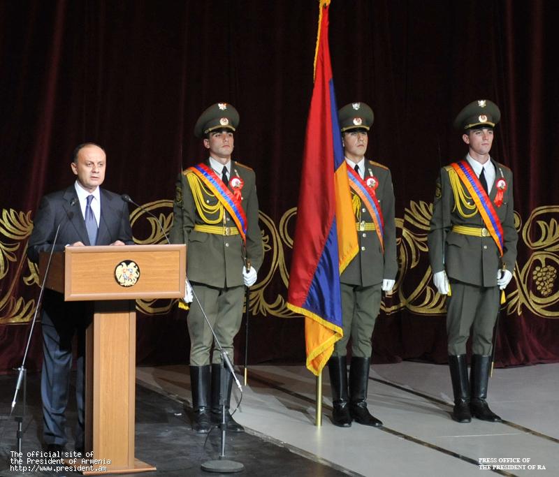 President Serzh Sargsyan attended the festivities at the Spendiarian Academic Opera and Ballet Theater dedicated to Army Day.