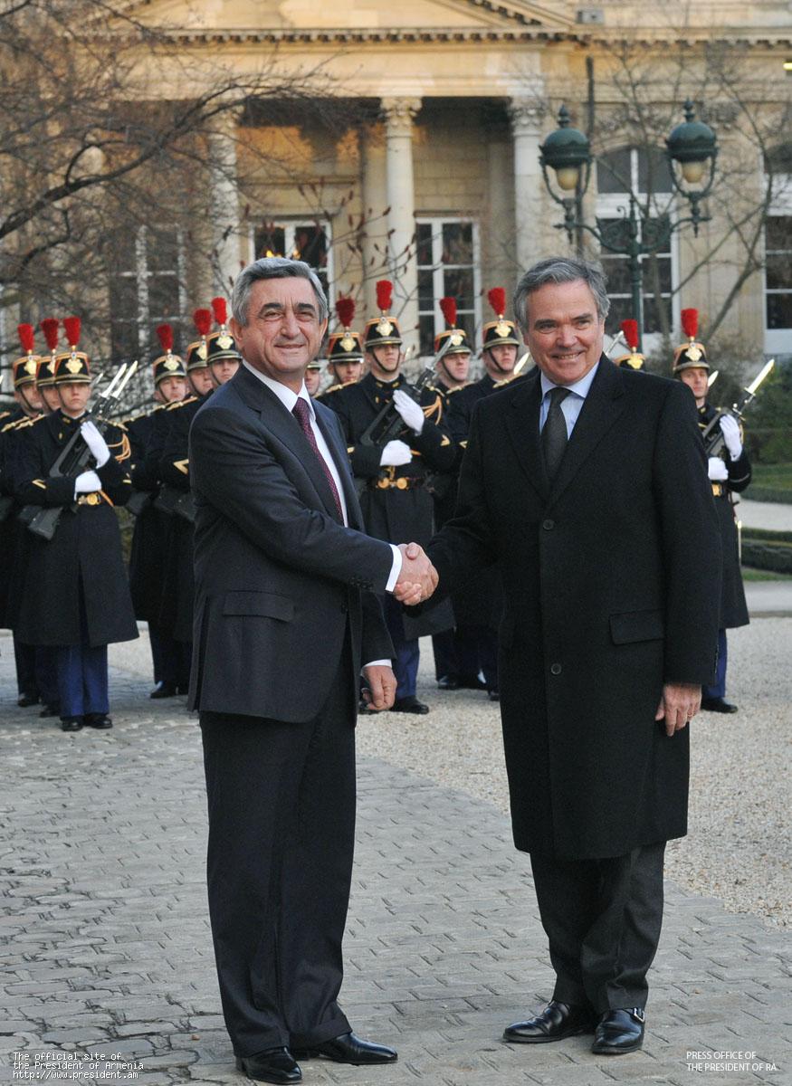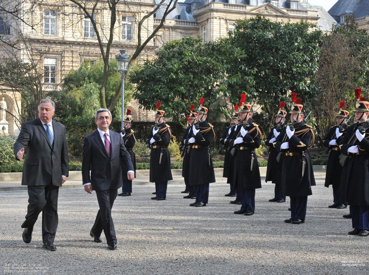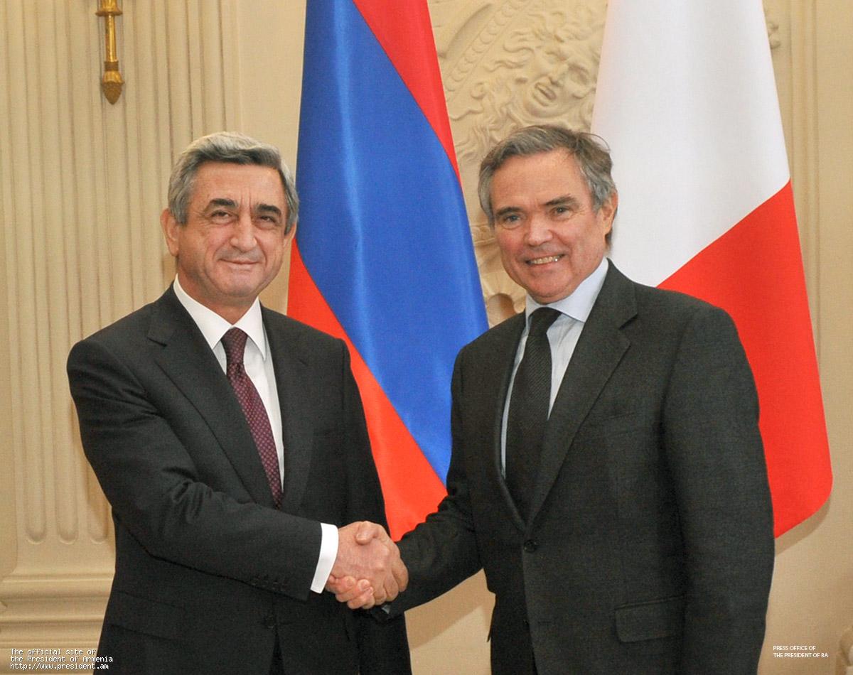In the framework of his official visit to France, on March 10 President Serzh Sargsyan met with the President of French Senate Gerard Larcher. The President of Armenia stressed special role of the parliaments of the two countries in further strengthening friendly and warm relations between Armenia and France. Serzh Sargsyan highly praised the activities of the French-Armenian Friendship Group and the current level of the interparliamentary cooperation, stressed the importance of regular contacts and reciprocal visits of the Armenian and French parliamentarians. In his turn, Gerard Larcher reiterated readiness of the Senate to promote the French-Armenian relations.