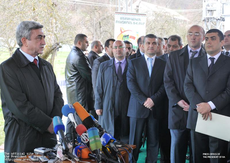 President Serzh Sargsyan gives a briefing to the journalists during his visit to Tavush marz