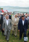 The President of Armenia visited public beaches located on the territory of Sevan National Park, which were established by the February 25, 2011 directive of the President and are aimed at providing free and efficient recreation and leisure for the population. President Sargsyan toured the beached and familiarized with the works conducted on the territory, conversed with the members of the Miasin movement who were cleaning the beaches.