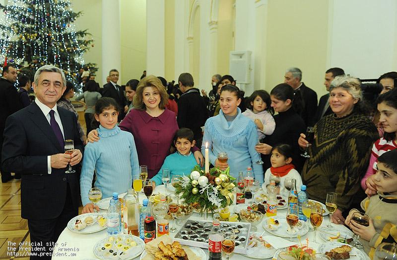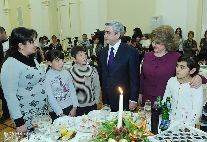On the occasion of New Year and Holy Christmas holidays, President Serzh Sargsyan and Mrs. Rita Sargsyan today at the Presidential Palace hosted over three dozen of large families residing in Yerevan.