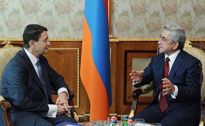 At the meeting, President Serzh Sargsyan and the Secretary General of the UN World Tourism Organization Taleb Rafai exchanged views on the programs implemented in and aimed at the development of tourism in Armenia, great potential of this area in our country, and a fuller utilization of Armenia’s competitive advantages for the development of the tourism area.