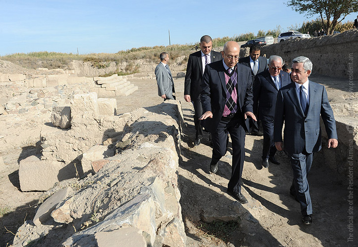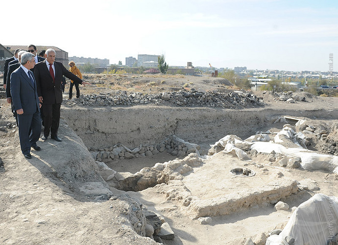 President Serzh Sargsyan visited today the archeological sites of special significance for Armenia’s ancient heritage – a dwelling on the territory of the historical capital Artashat, Shengavit and Erebuni historical and scientific refuge museums.
