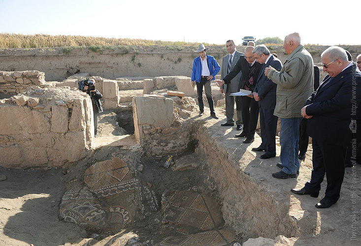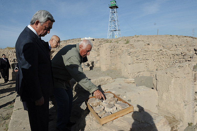 The President of Armenia familiarized with the results of the excavations and with the conditions and problems at the historical sites. He conversed about that with the heads of the archeological expeditions and officials responsible for the administration of the sites.