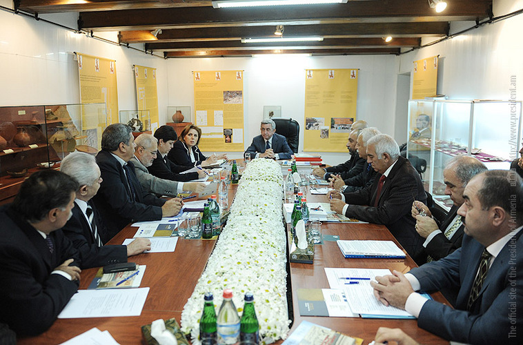 Considering the fact that the raised issues are plenty and diverse, the President of Armenia suggested the specialists of the area together with the Ministry of Culture to conduct additional discussions and identify most important areas, set priorities in order to find extra means to solve the problems. Serzh Sargsyan assured that until now allocations from the state budget for the archeological works have been steadily increasing and said that the tendency will stay.
