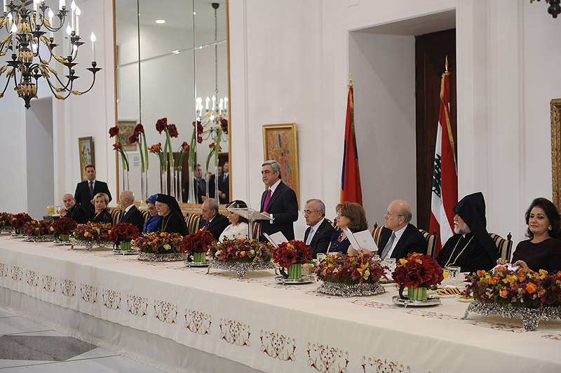 In his toast addressed to the President of Lebanon, his spouse, the President of the National Assembly, Prime Minister and all those present at the official dinner, Serzh Sargsyan expressed gratitude for the warm welcome on the hospitable soil of Lebanon - the country which is so dear to the hearts of the Armenians.
