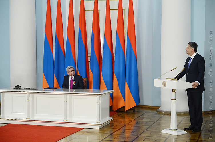 Before presenting the letter of resignation, the Prime Minister congratulated President Serzh Sargsyan on assuming the second term of his Presidency and underscored that for him personally and the government led by him, as well as for any political and state figure it is a great honor and contentment to serve the people on these high positions and to work with the President of Armenia. Tigran Sarkissian noted that under the political leadership of the President of Armenia, the team has been working with dedication all these years and has been trying to fulfill every task set by the President. “Certainly, we’ve had difficult times; there’s been not only success but also failures and mistakes. Mr. President, the best adviser of the future is the past. Your entire career, your experience and knowledge, your personal qualities are the guarantees which inspire us with confidence that our state will move forward and we will mark new achievements and new victories,” Prime Minister Tigran Sarkissian said in his remarks.