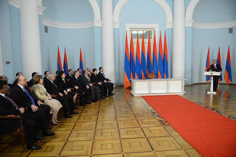 The President thanked the cabinet members who rendered their resignation for the efficient cooperation and noted that they have evidently been working under difficult conditions, in many cases have managed to solve seemingly insoluble problems, withstood challenges, and all this is commendable. “Irrespective of who will be working in the new government, you have served the Armenian people and I am confident that will be serving till senility, because this calling – to serve, cannot be temporary, because for you, for us all to serve means to live. I thank you and want every one of you to know that regardless of all assessments, you have created favorable conditions for the new government. I am confident that the new government of Armenia will carry on with your best traditions and will undoubtedly fulfill tasks set before it and these tasks are plenty. I once again thank you and wish you all the best,” President Serzh Sargsyan said.