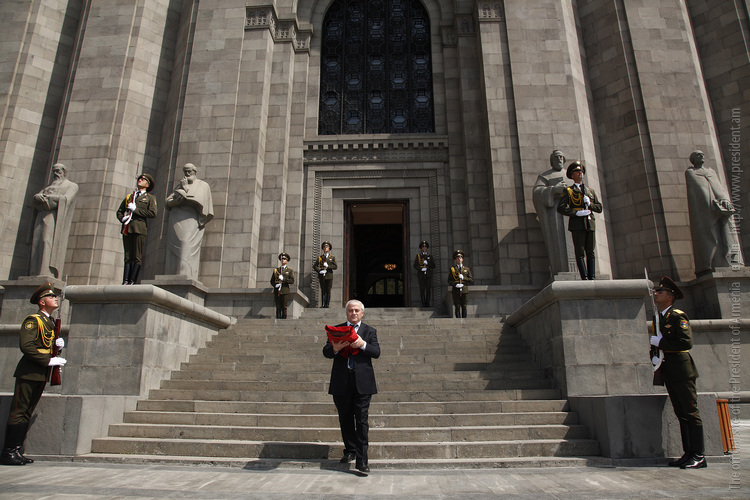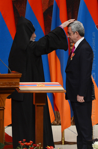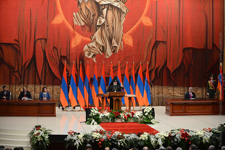 After the blessings and a prayer offered by His Holiness Catholicos of All Armenians Garegin II, President Serzh Sargsyan made a statement.