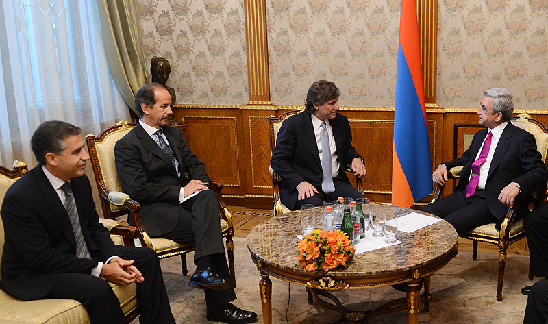 Welcoming the high guest and his delegation, the President noted that despite geographical distance relations between Armenia and Argentine have always been exceptionally warm, while great sympathy and mutual trust between the two peoples have been in existence long before Armenia’s independence. According to Serzh Sargsyan, Argentine has always been compassionate toward the problems of the Armenian nation. The parties underscored that in the international settings, approaches and positions of the two countries on a number of significant issues concur and that the Armenian-Argentinean relations are anchored in mutual assistance and trust.