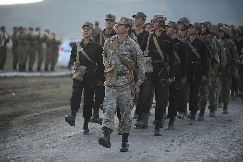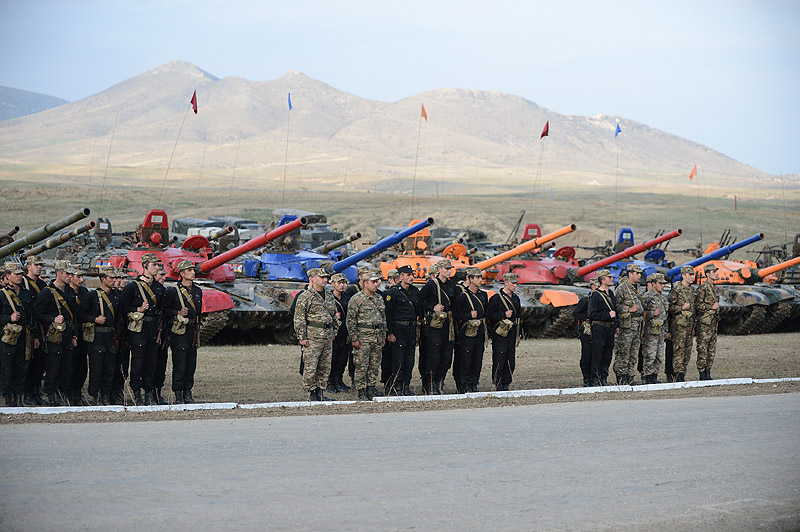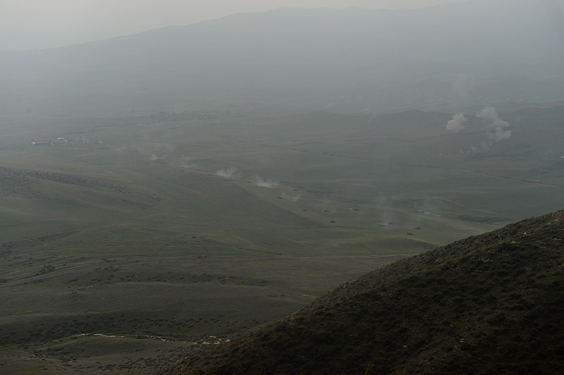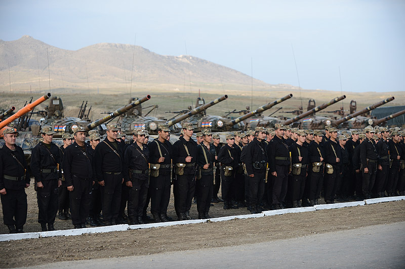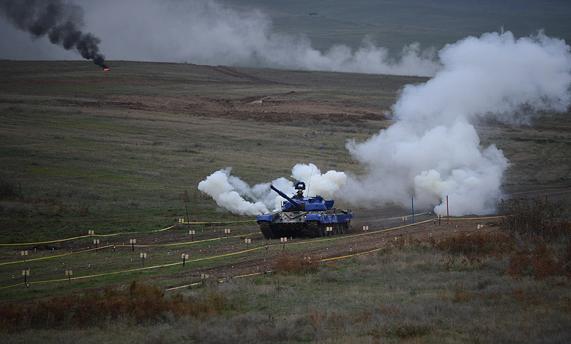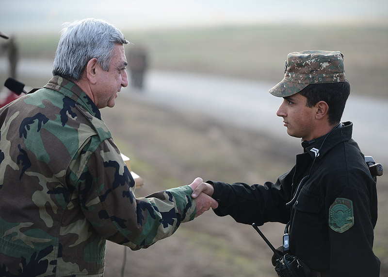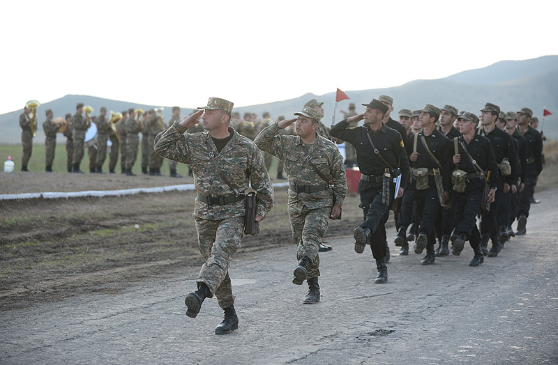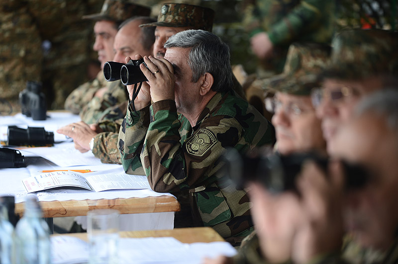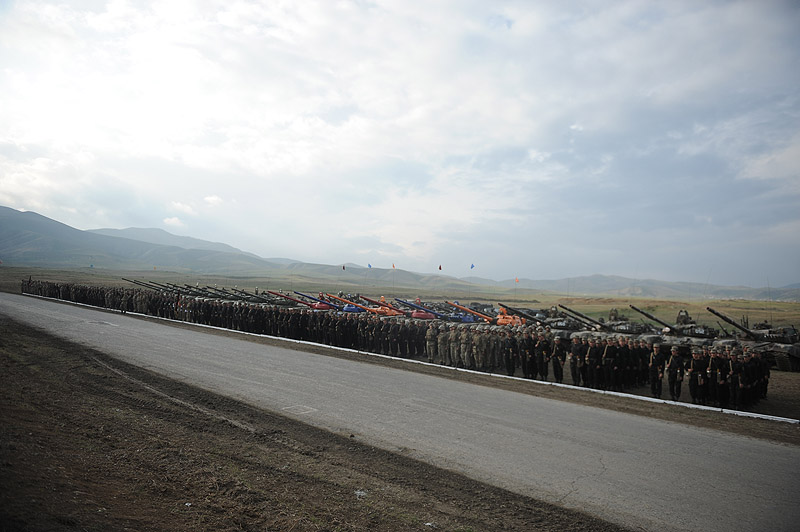 On the second day of his working visit to the Republic of Nagorno Karabakh, President Serzh Sargsyan together with President of NKR Bako Sahakian observed a “tank combination” competition conducted at the Tigranakert training ground. The competition revealed the best participant through the precise firing and other requirements. Later, at the same training ground the Presidents of the two Armenian Republics observed the two-sided tactical exercise titled “Preparing the assault force of the Defense Army for full combat readiness: organization of defense, conduct of defensive battle, organization of assault.” The most important elements of the exercise were the actions of the raiding detachment in the flanks and in the rear of the enemy. Military exercised were followed by the ceremony of awarding the personnel: the most active participants of the exercised received emoluments.