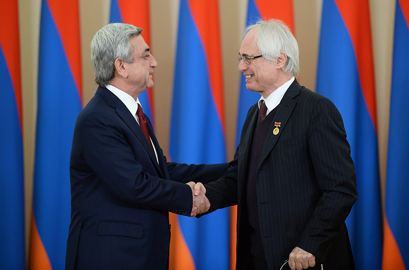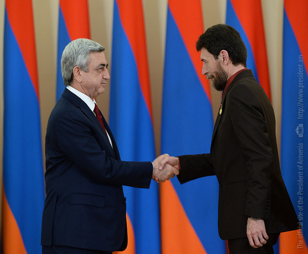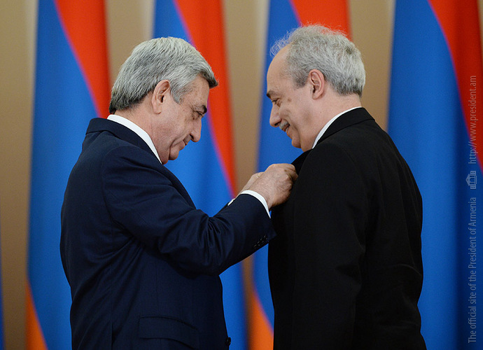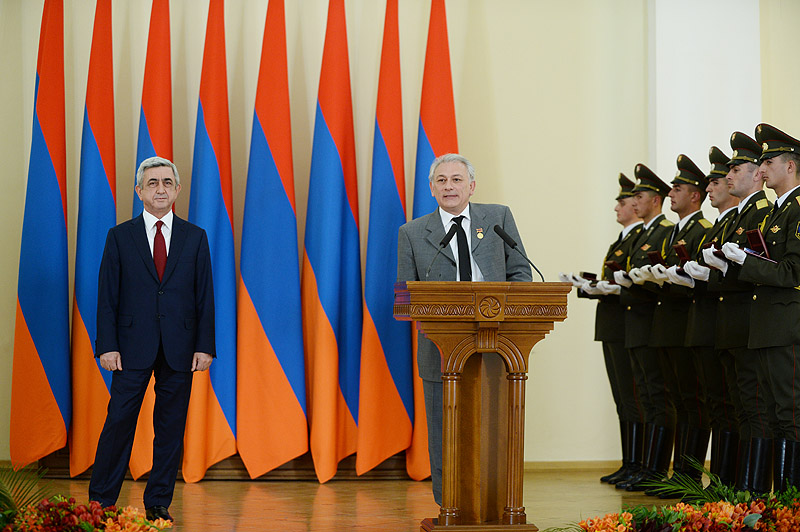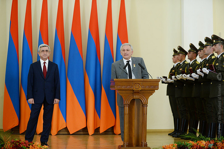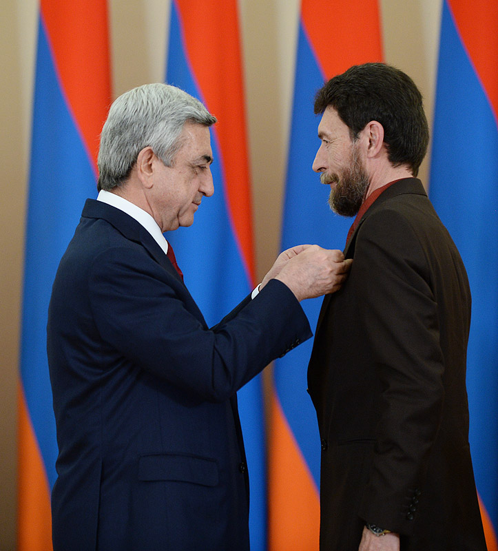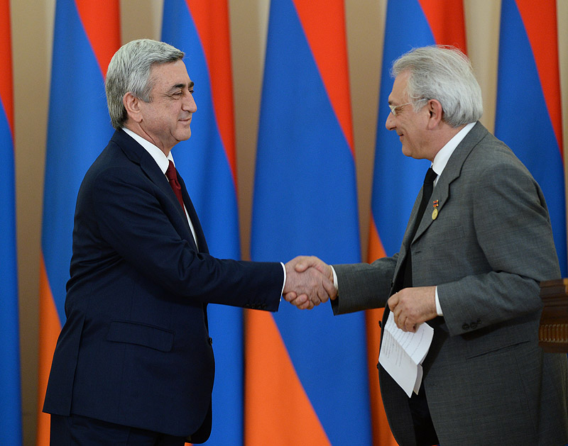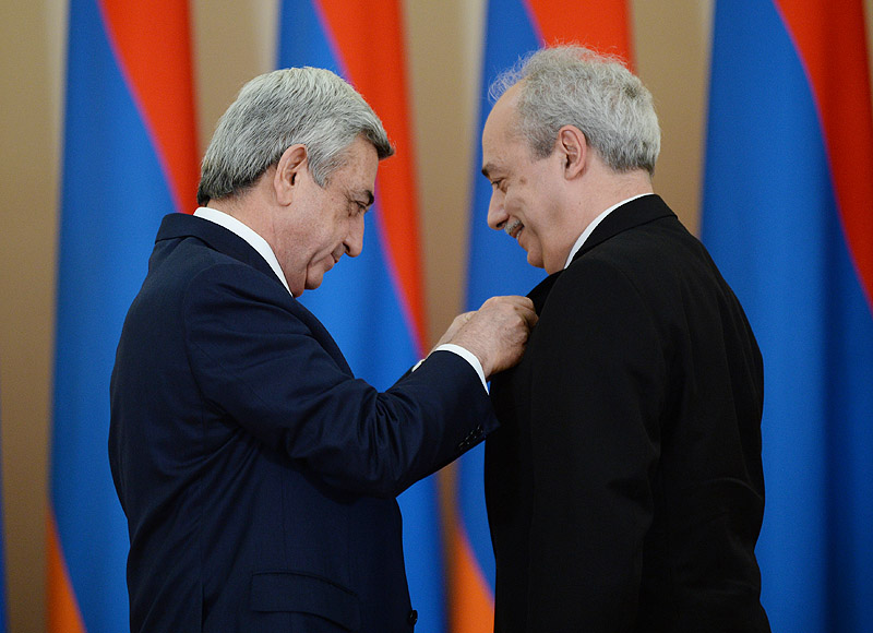 By the decree of President Serzh Sargsyan, based on the Decree of the President of the Republic of Armenia NH-1164-N of August 22, 2002 “On the Procedure for the Establishment and Conferring the RA State Awards” and at the recommendations of the State Award Commissions the RA State Awards for 2013 in a number of areas were handed. The official award-giving ceremony took place today at the Presidential Palace.