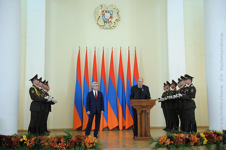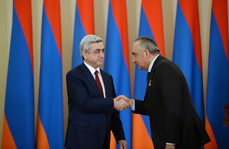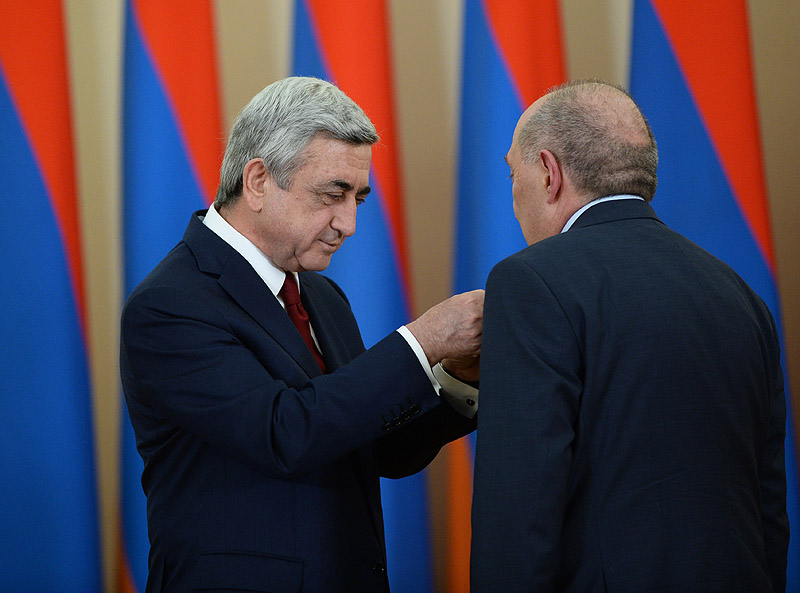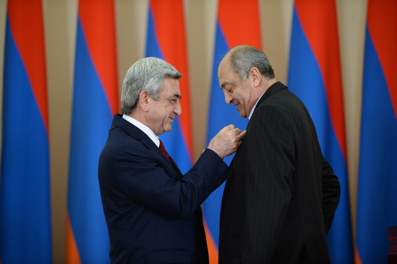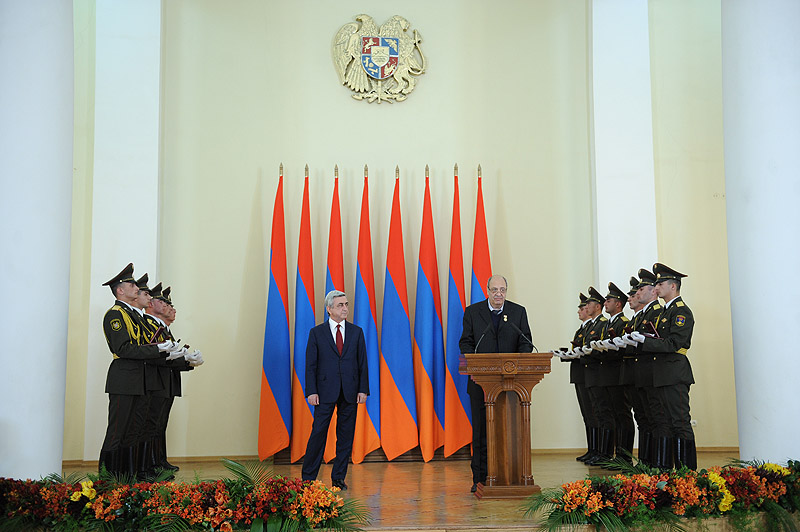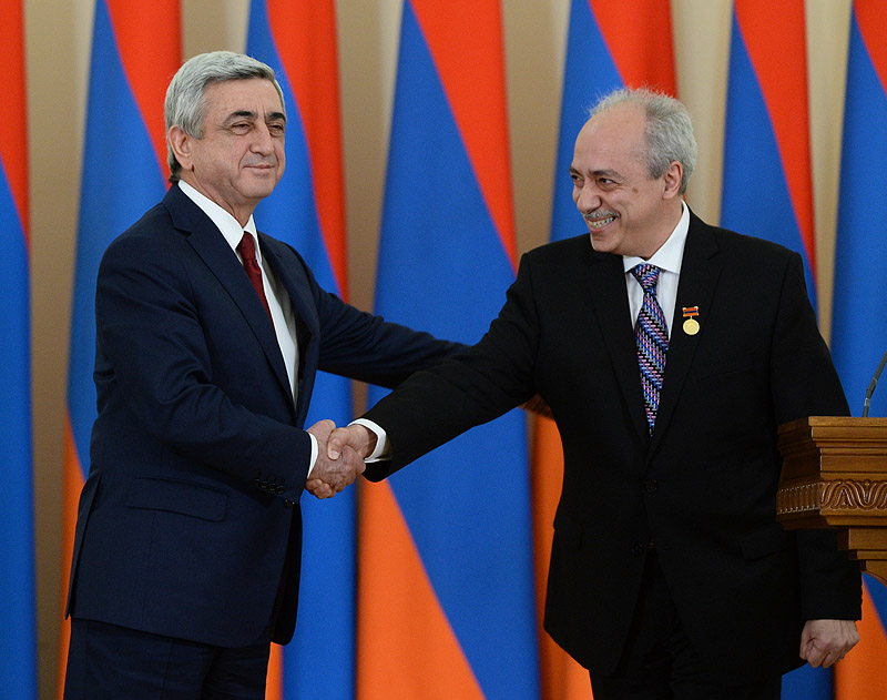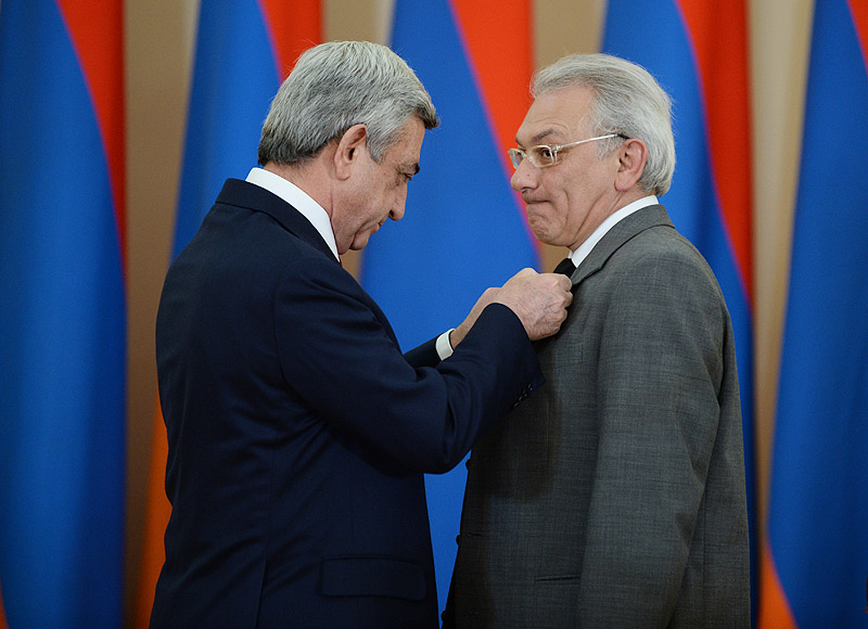 By the decree of President Serzh Sargsyan, based on the Decree of the President of the Republic of Armenia NH-1164-N of August 22, 2002 “On the Procedure for the Establishment and Conferring the RA State Awards” and at the recommendations of the State Award Commissions the RA State Awards for 2013 in a number of areas were handed. The official award-giving ceremony took place today at the Presidential Palace.