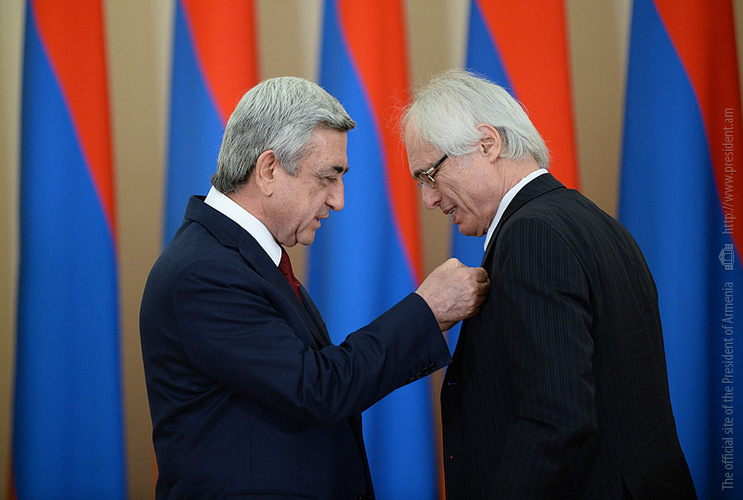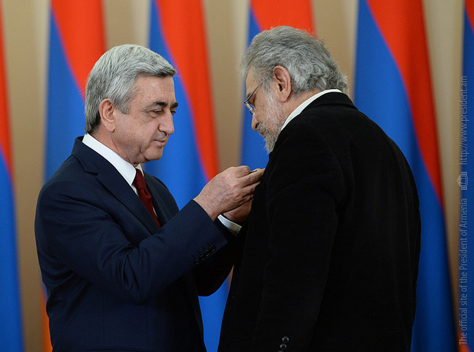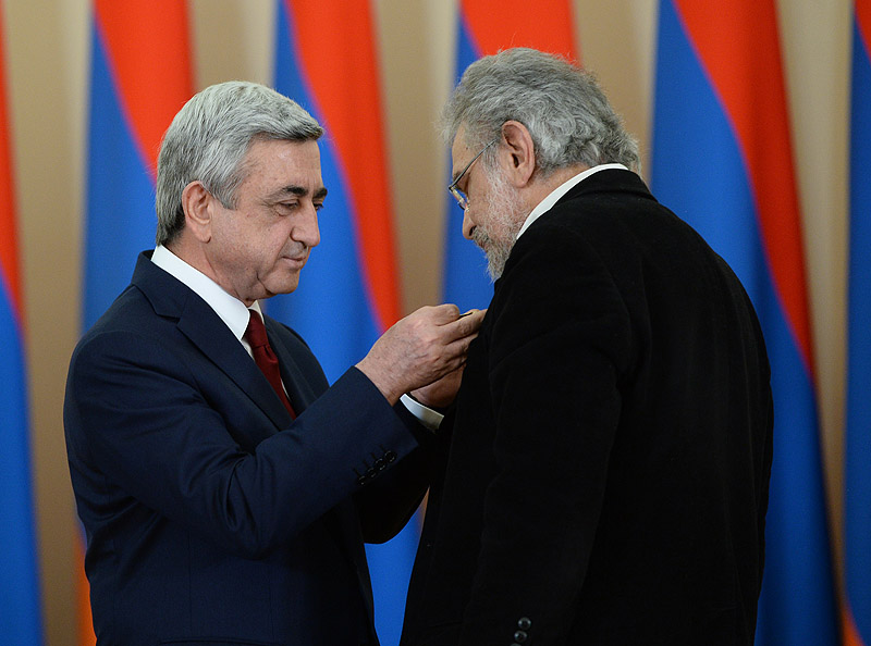 I congratulate you on the occasion of being awarded by State Awards of the Republic of Armenia. I wish you health and vigor, personal successes and, above all, new creative flights and new heights. We are richer and stronger thanks to you. Keep on making us rich and strong.