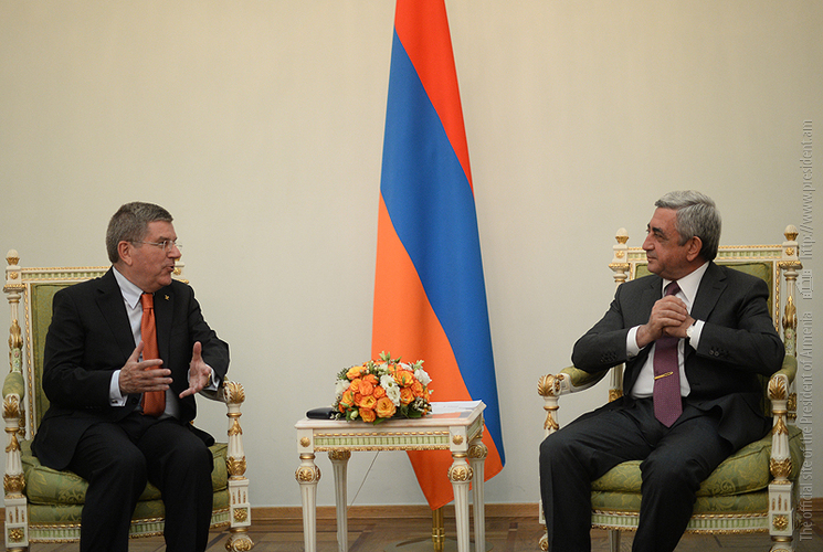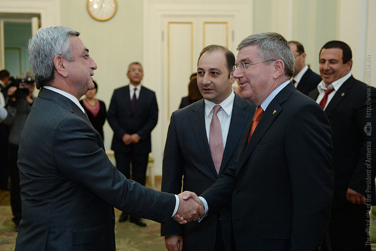 The Armenian President welcomed the guests and expressed confidence that the visit of the IOC President to Armenia will give a new stimulus to development of sports in Armenia.