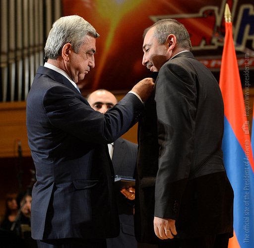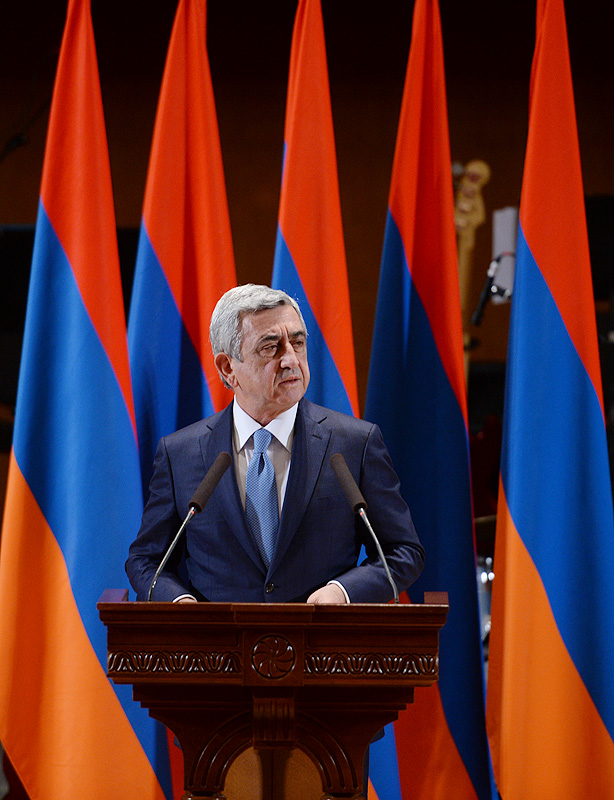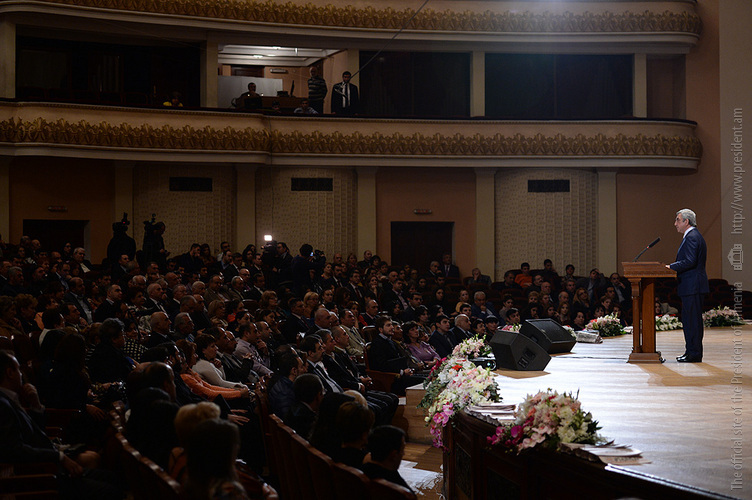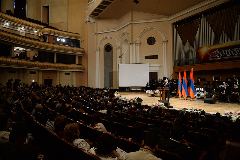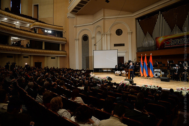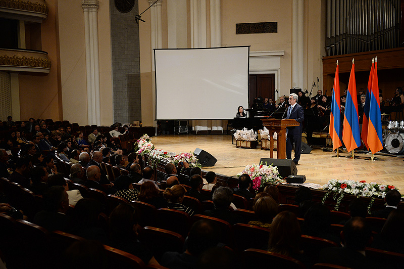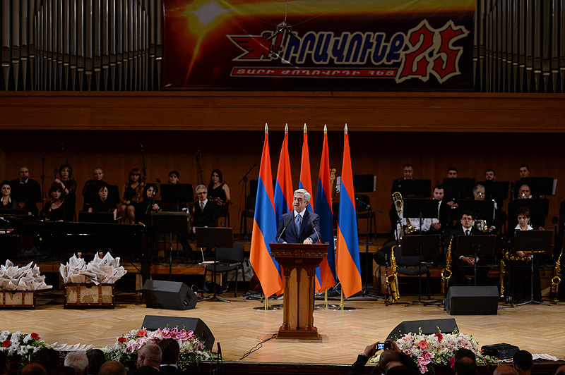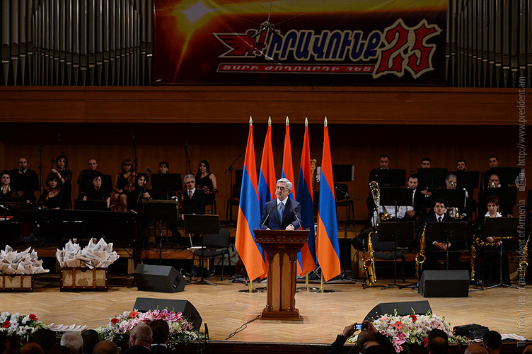 President Serzh Sargsyan today attended the event dedicated to the 25th anniversary of the Iravunq newspaper at Aram Khachaturian Concert Hall.